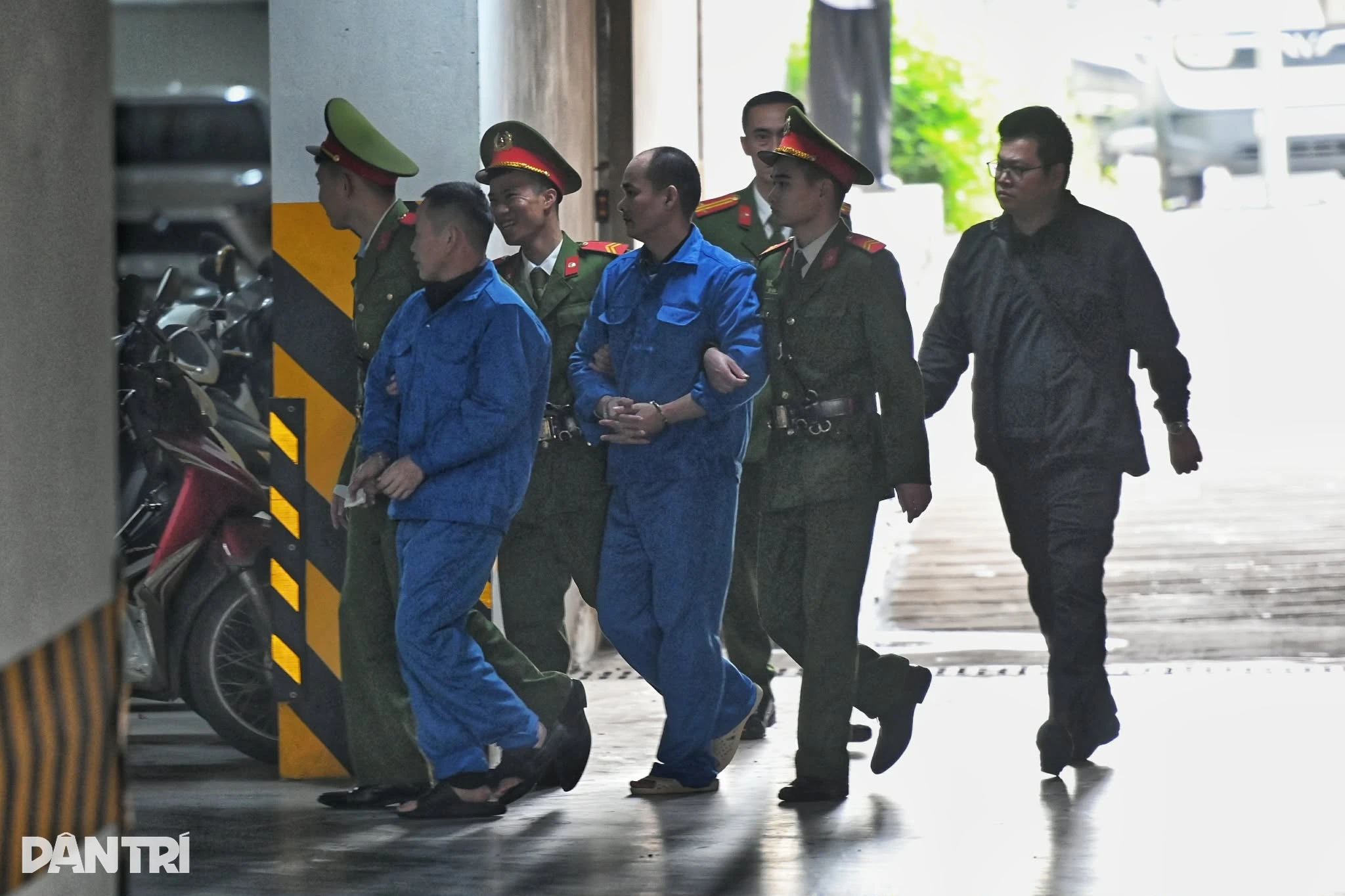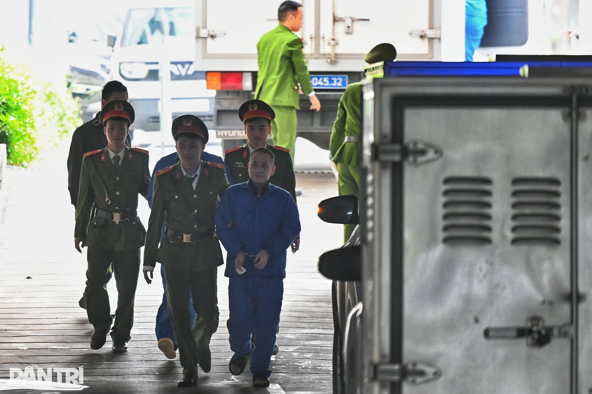 Lúc 8h15, các bị cáo được dẫn giải tới tòa (Ảnh: Hải Nam).