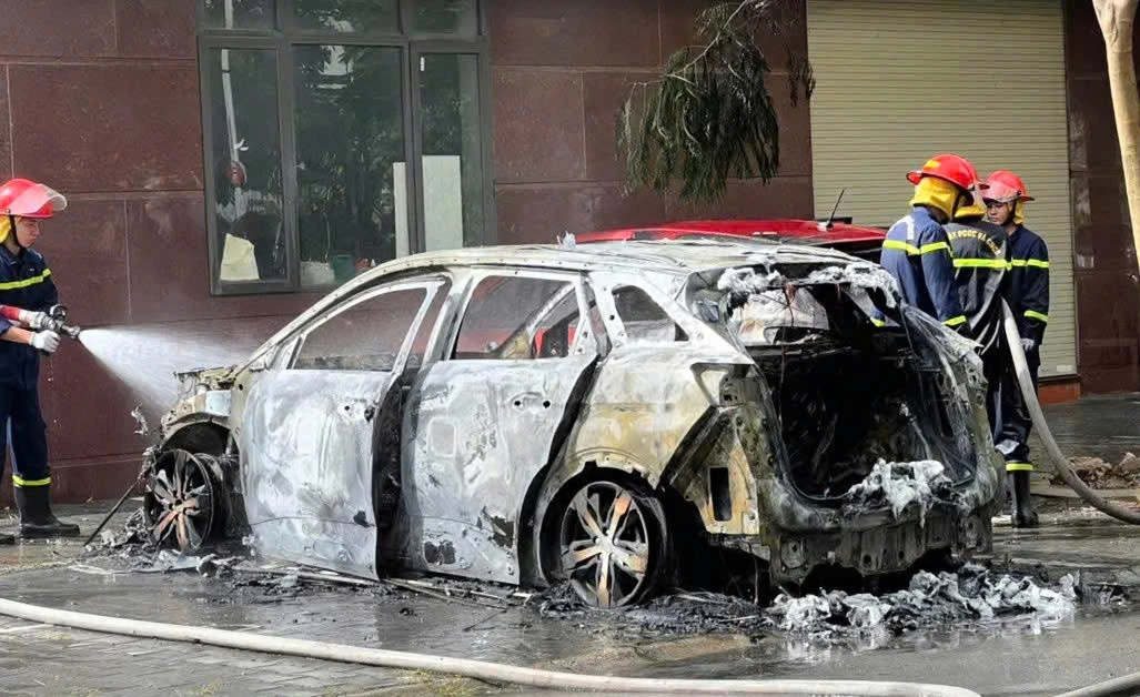 "Khi tôi bật khóa xe để khởi động thì ngửi thấy mùi khét và thấy khói trắng bốc ra từ khoang lái. Tôi cùng vợ lập tức lấy giấy tờ và tài sản quan trọng ra ngoài, dùng bình chữa cháy mini để dập lửa, đồng thời gọi lực lượng chức năng đến hỗ trợ", ông T. cho biết.