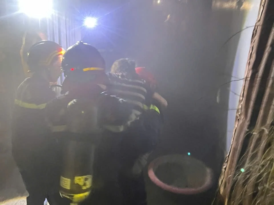 Lính cứu hoả đưa 2 nạn nhân mắc kẹt trong căn nhà cháy ra ngoài an toàn. Ảnh: MĐ.