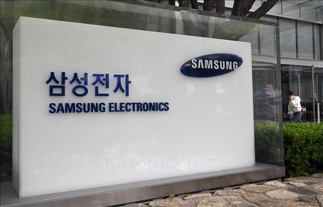 Biểu tượng Công ty Samsung Electronics tại tòa nhà ở Seoul, Hàn Quốc. Ảnh: AFP/TTXVN