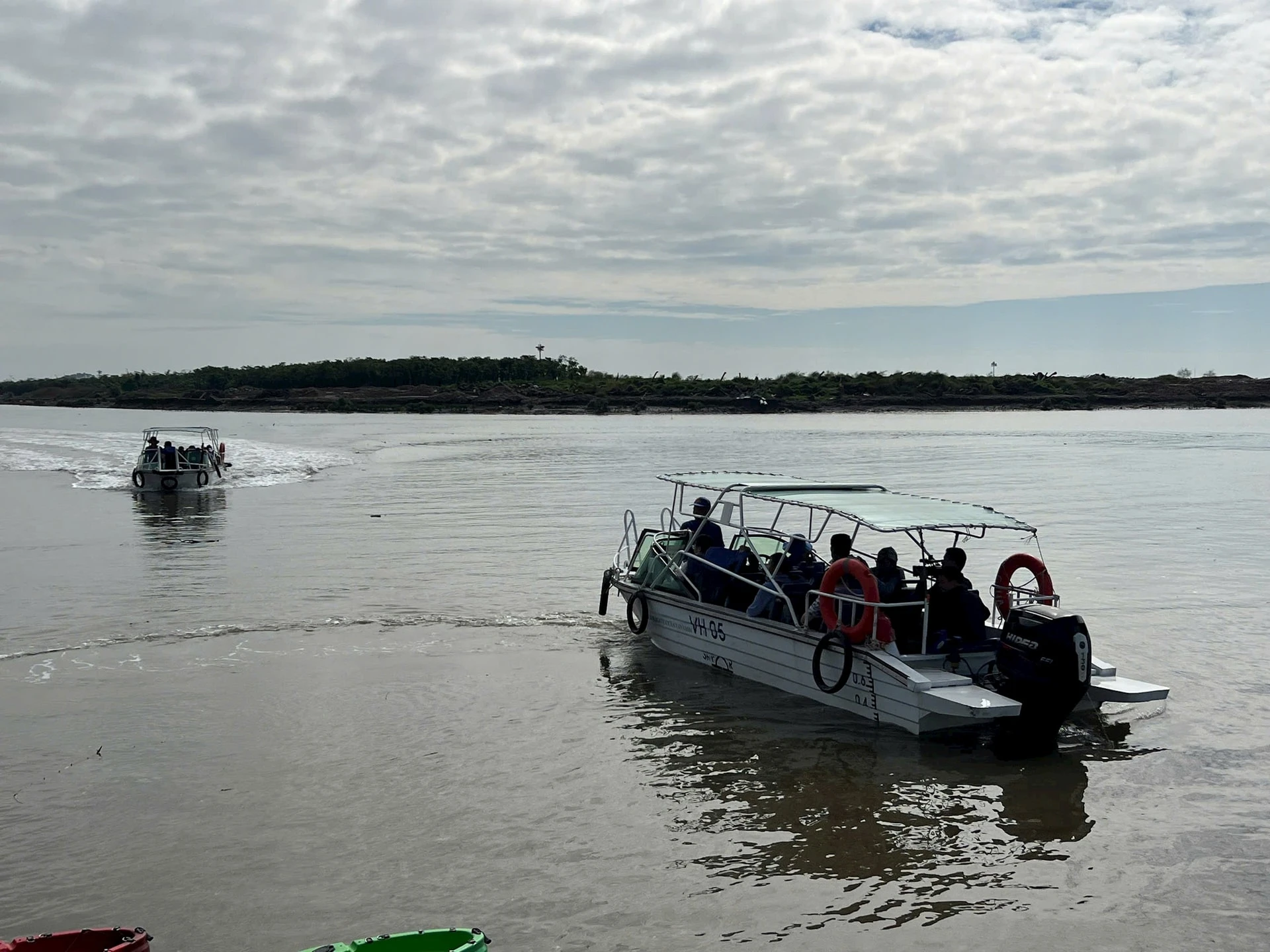 Xa xa rừng ngập mặn là bến tàu không số huyền thoại, cửa biển Văn Úc. Ảnh: Bảo Hân