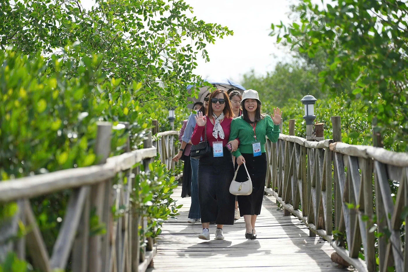 Để phát triển du lịch mà vẫn bảo tồn nguyên vẹn giá trị thiên nhiên, một cây cầu gỗ dài gần 3km được xây dựng để du khách có thể cảm nhận từng hơi thở của cây sú vẹt cùng tiếng chim ríu rít sớm chiều.