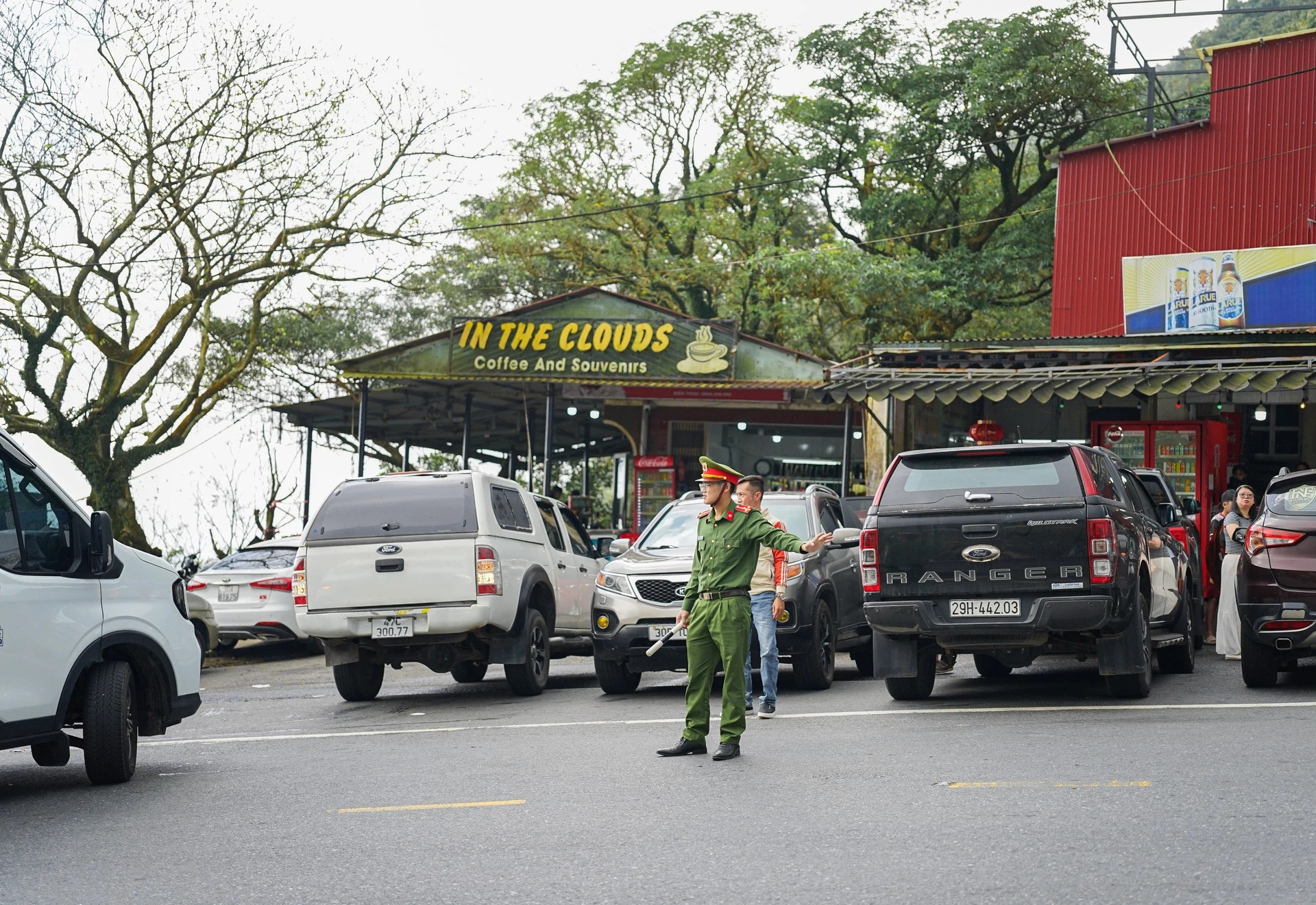 Trước lưu lượng lớn phương tiện du xuân tại đèo Hải Vân và di tích Hải Vân Quan, Công an phường Hải Vân tăng cường bảo đảm an ninh trật tự, an toàn giao thông. Ảnh: XUÂN SƠN