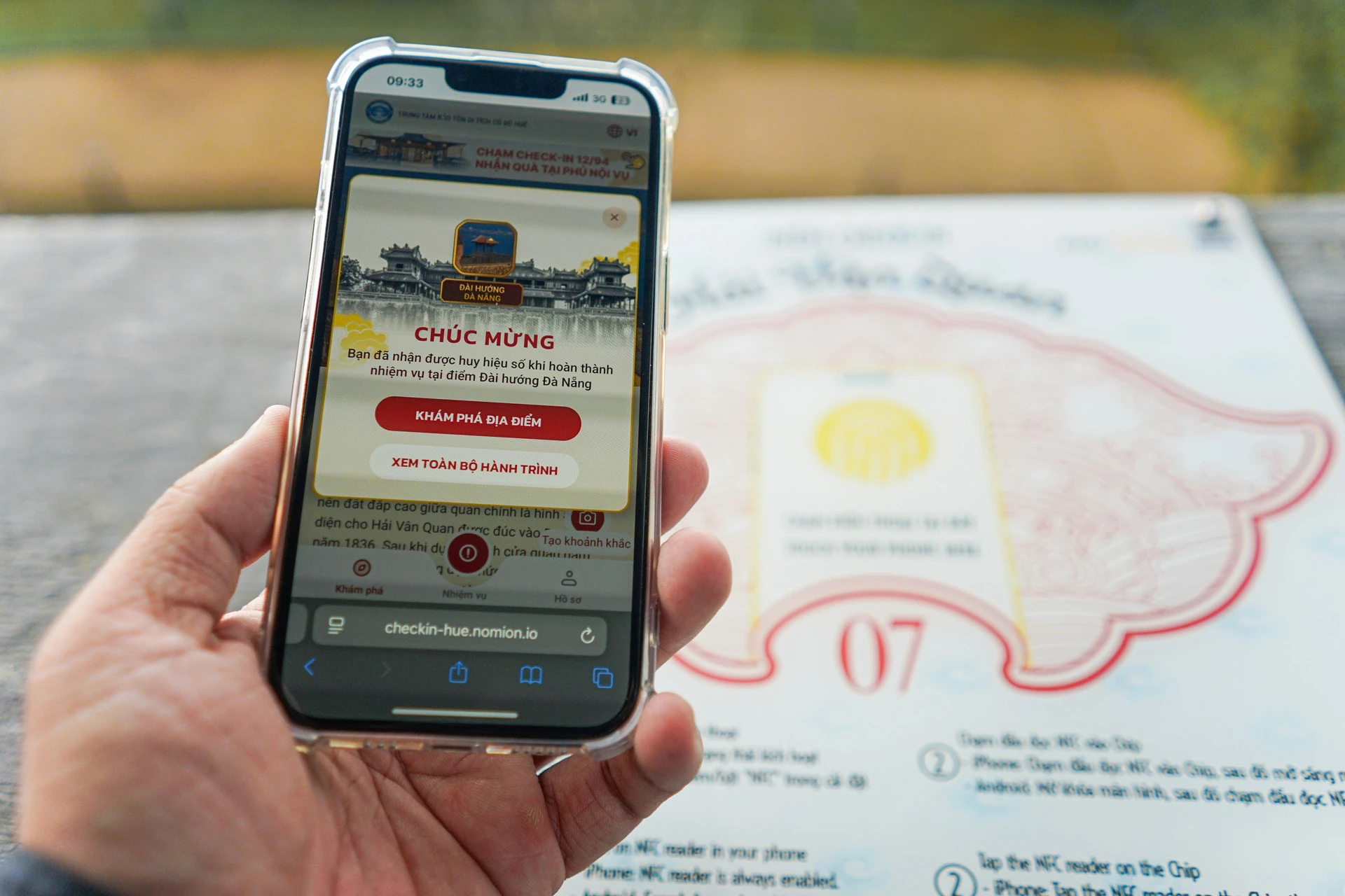 Du khách trải nghiệm các dịch vụ tiện ích như bản đồ số hóa du lịch 3D, công nghệ NFC tại di tích. Ảnh: XUÂN SƠN
