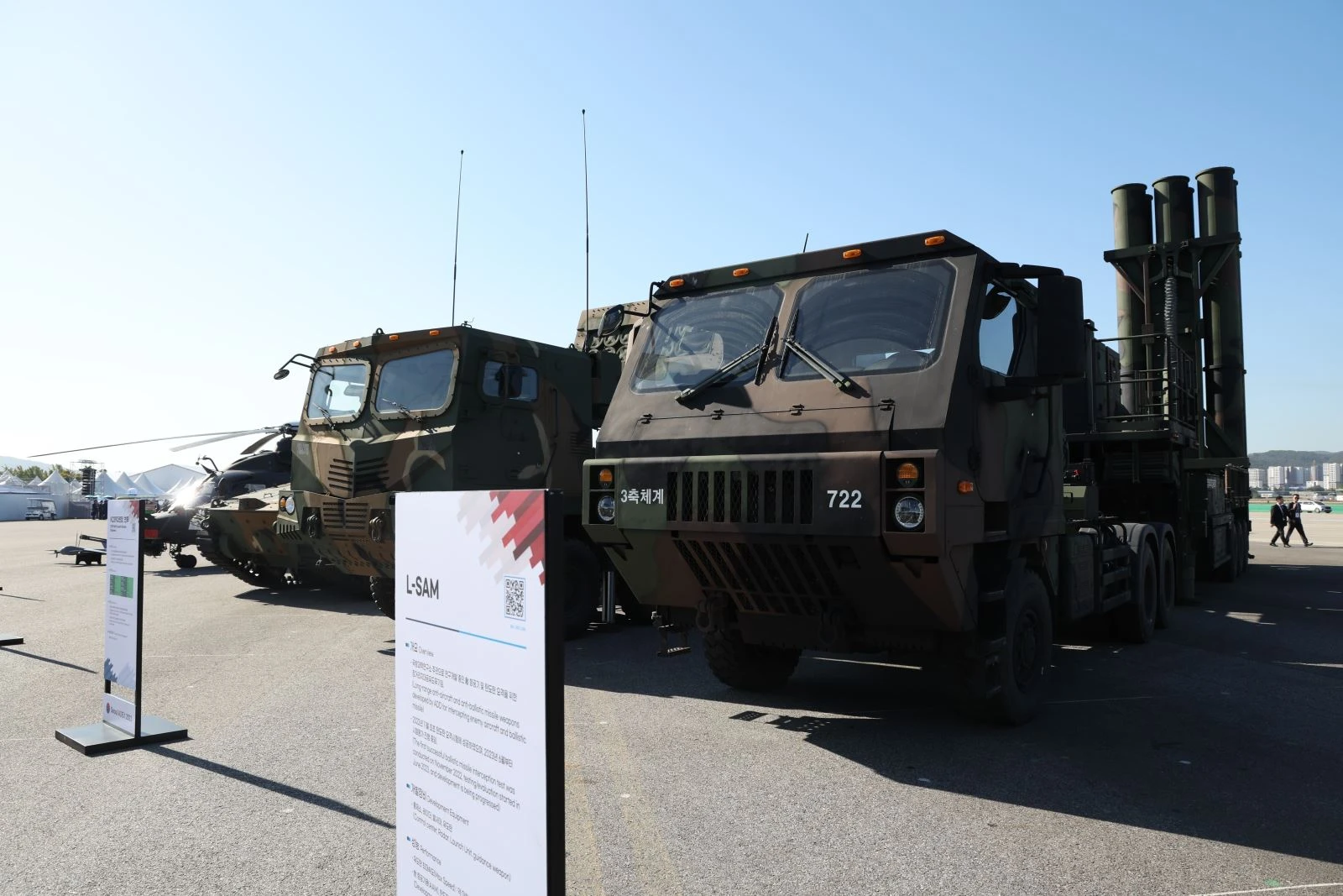 Chỉ sau 70 năm, Hàn Quốc đã lột xác ngoạn mục, trở thành "kho vũ khí toàn cầu" với xe tăng K2, pháo K9, FA-50... chinh phục cả NATO (trong ảnh: Hệ thống Tên lửa đất đối không tầm xa (L-SAM) được trưng bày tại căn cứ không Seoul ở Seongnam, phía Nam Seoul, Hàn Quốc). Ảnh: Yonhap/TTXVN