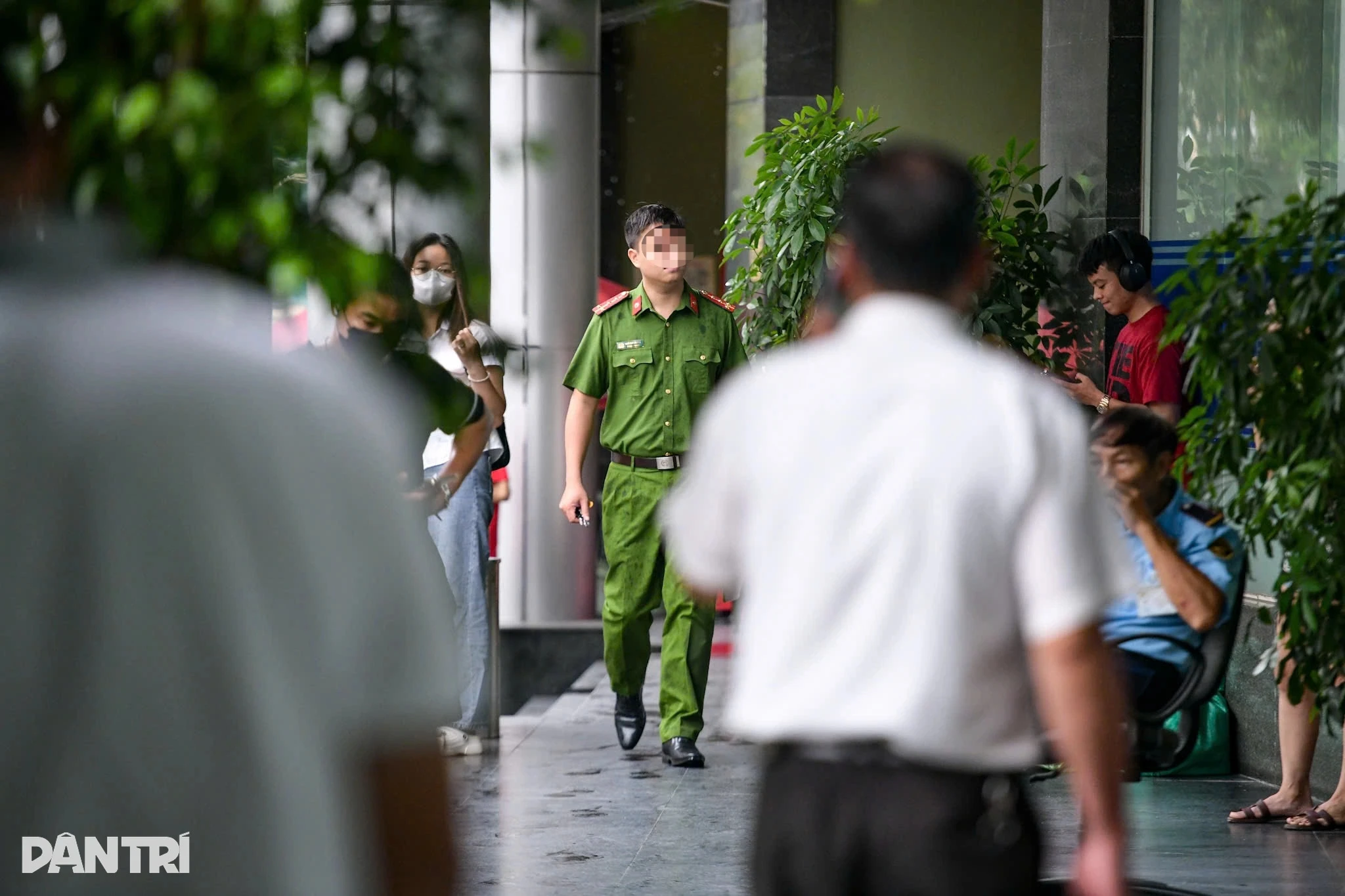 Trong ngày 7/10, công an liên tục ra vào khu vực tòa nhà 18 Tam Trinh.