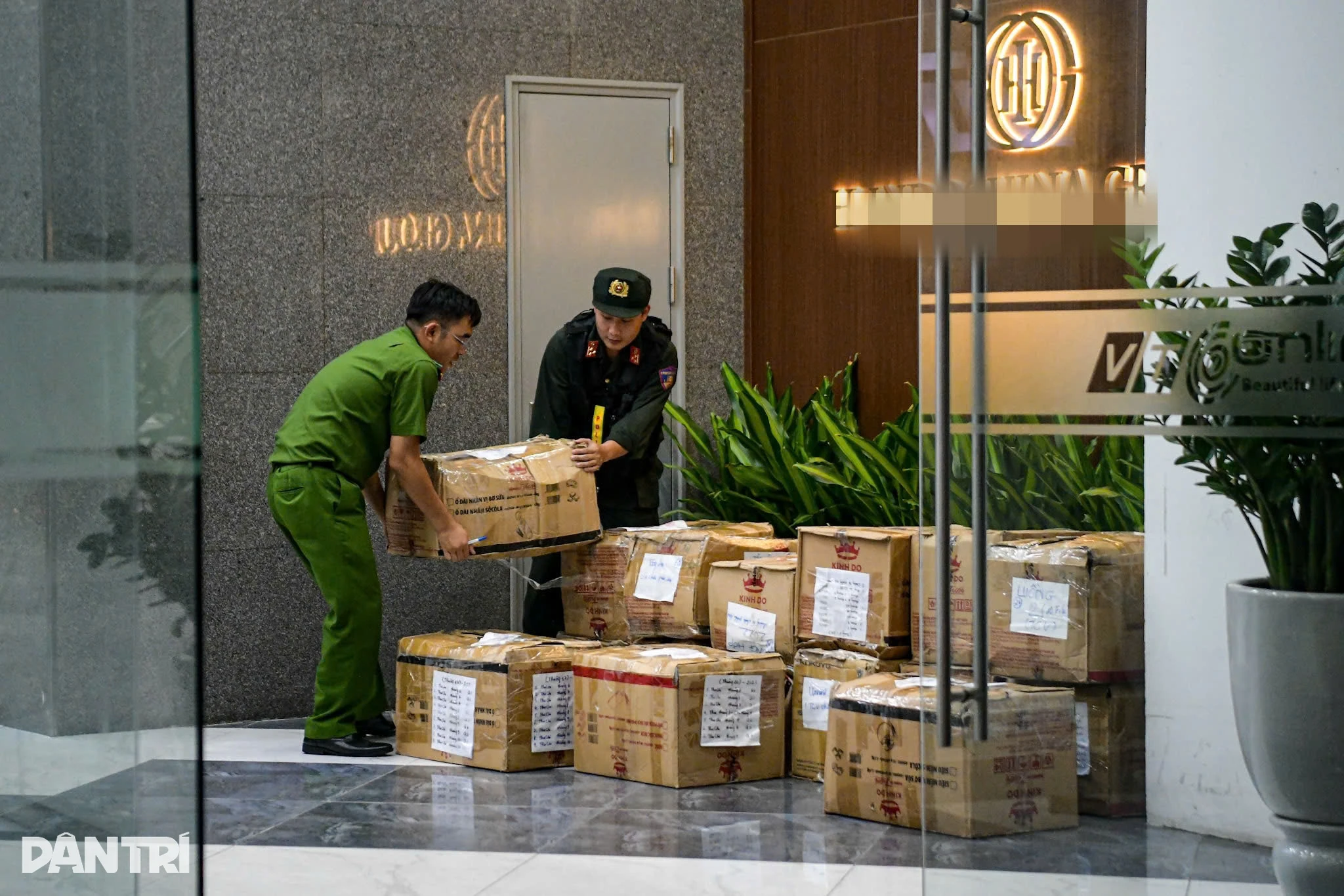 Khoảng 19h45 ngày 7/10, hàng chục thùng tài liệu được vận chuyển ra khỏi tòa nhà 18 Tam Trinh ( Hà Nội ) dưới sự giám sát của lực lượng công an .