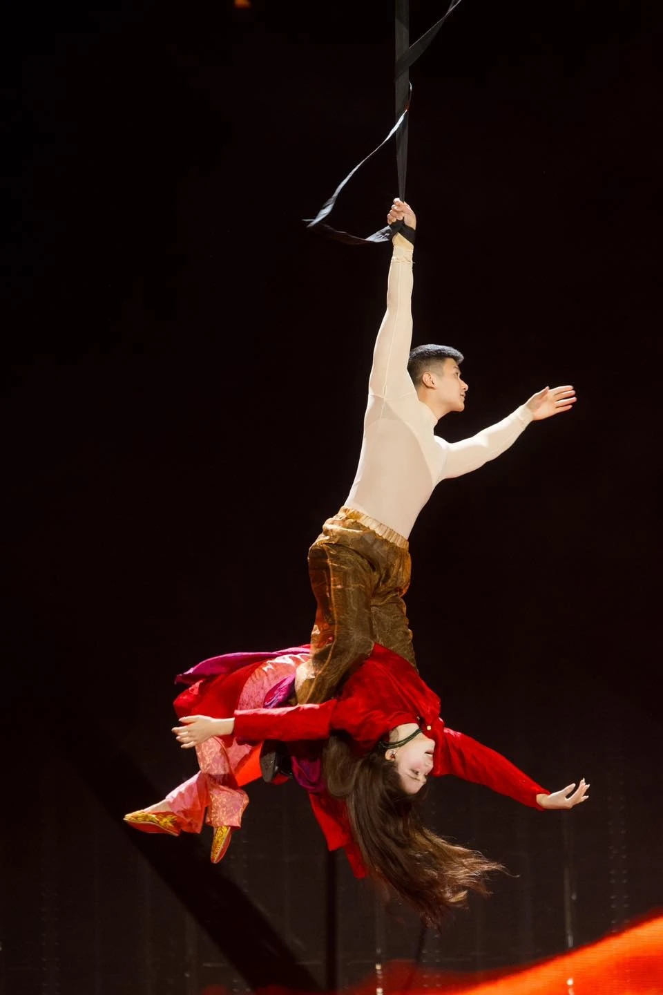 Hòa Minzy buông hai tay để nghệ sĩ xiếc giữ bằng hai chân (Ảnh: Ban tổ chức).