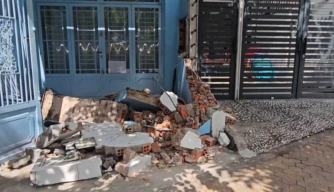 Tường nhà dân bị xe taxi công nghệ tông sập. Ảnh: TK.