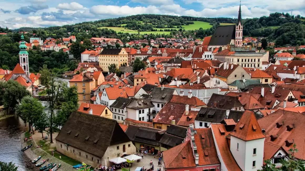 Thị trấn nhỏ nép bên sông Vltava này như bị thời gian bỏ quên, những ngôi nhà rực rỡ sắc màu, mái ngói đỏ uốn cong theo triền núi, dòng sông ôm ấp phố cổ trong vòng tay dịu dàng.