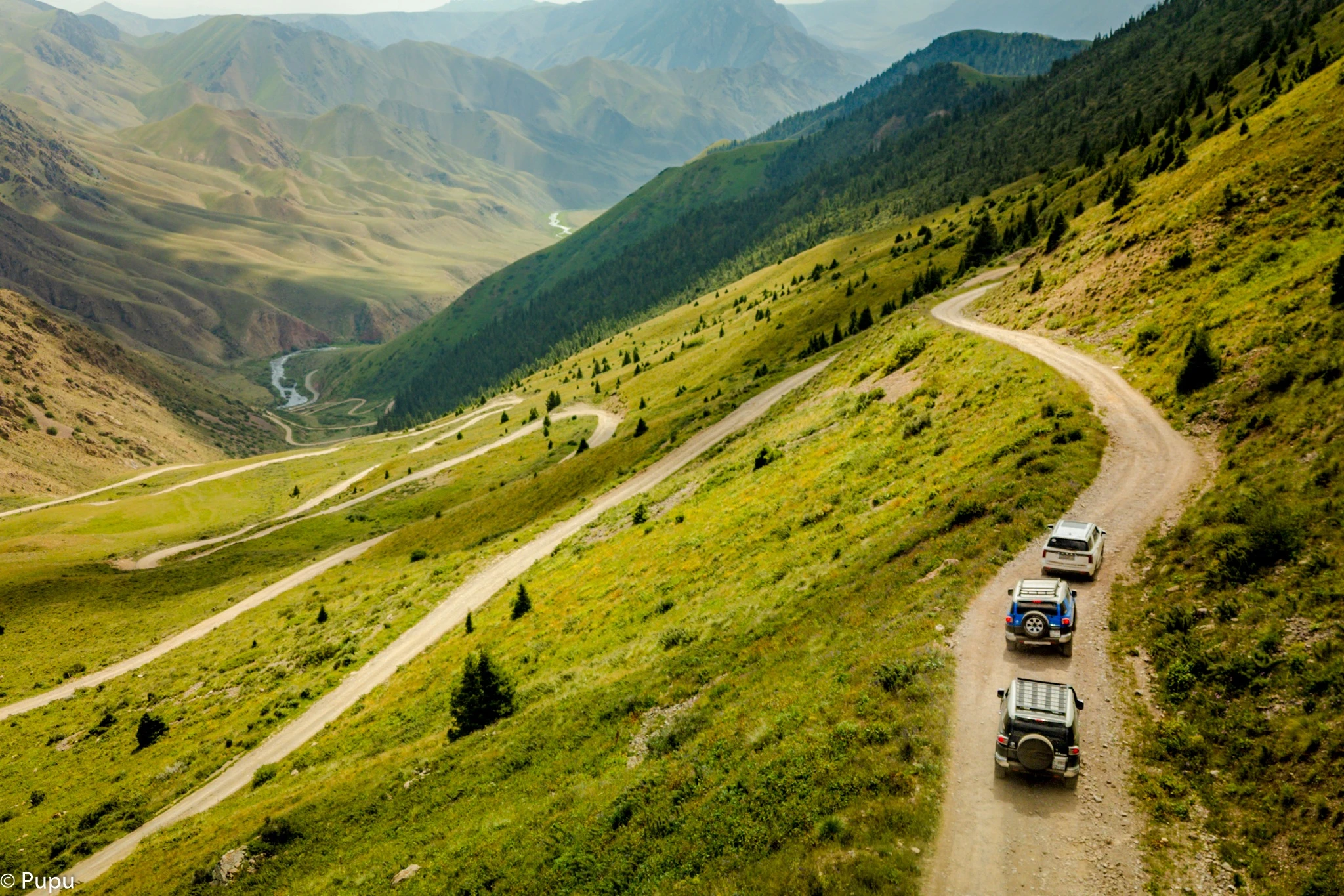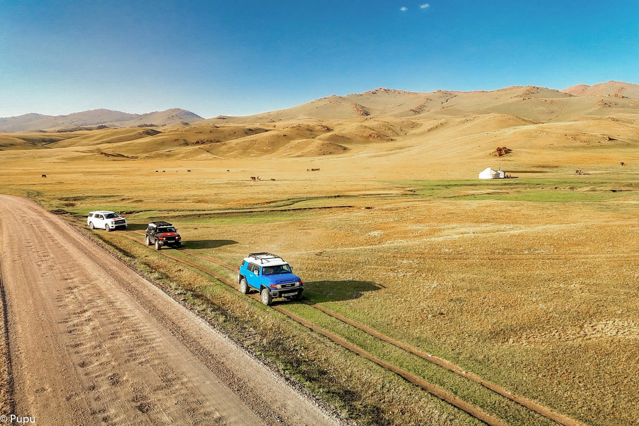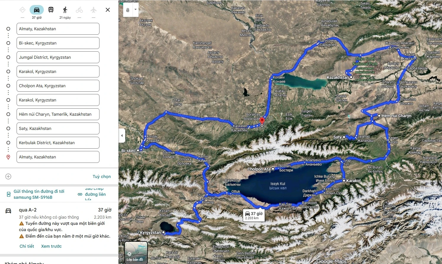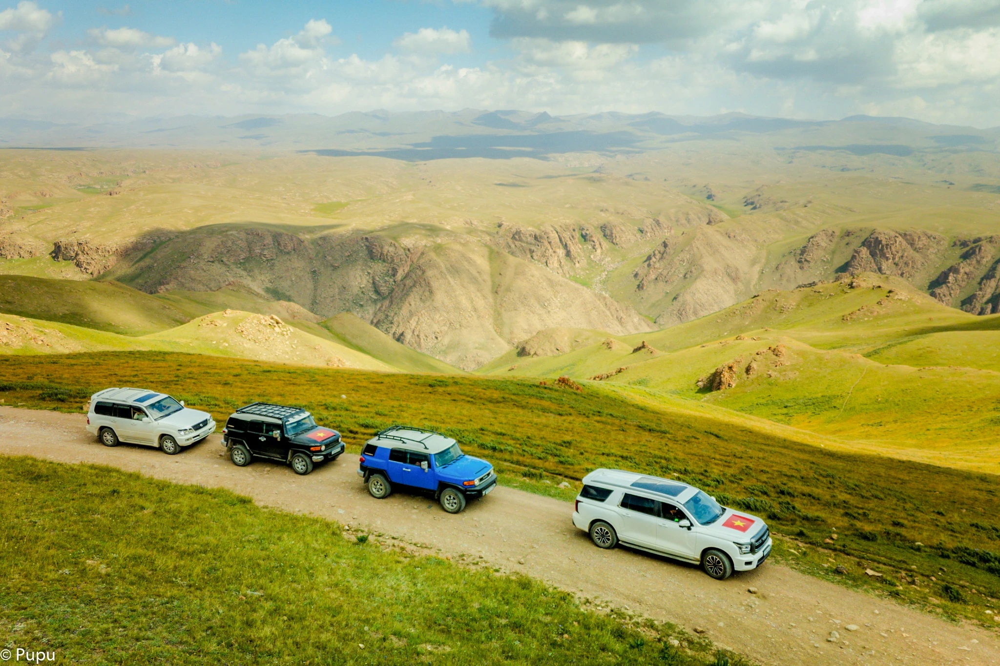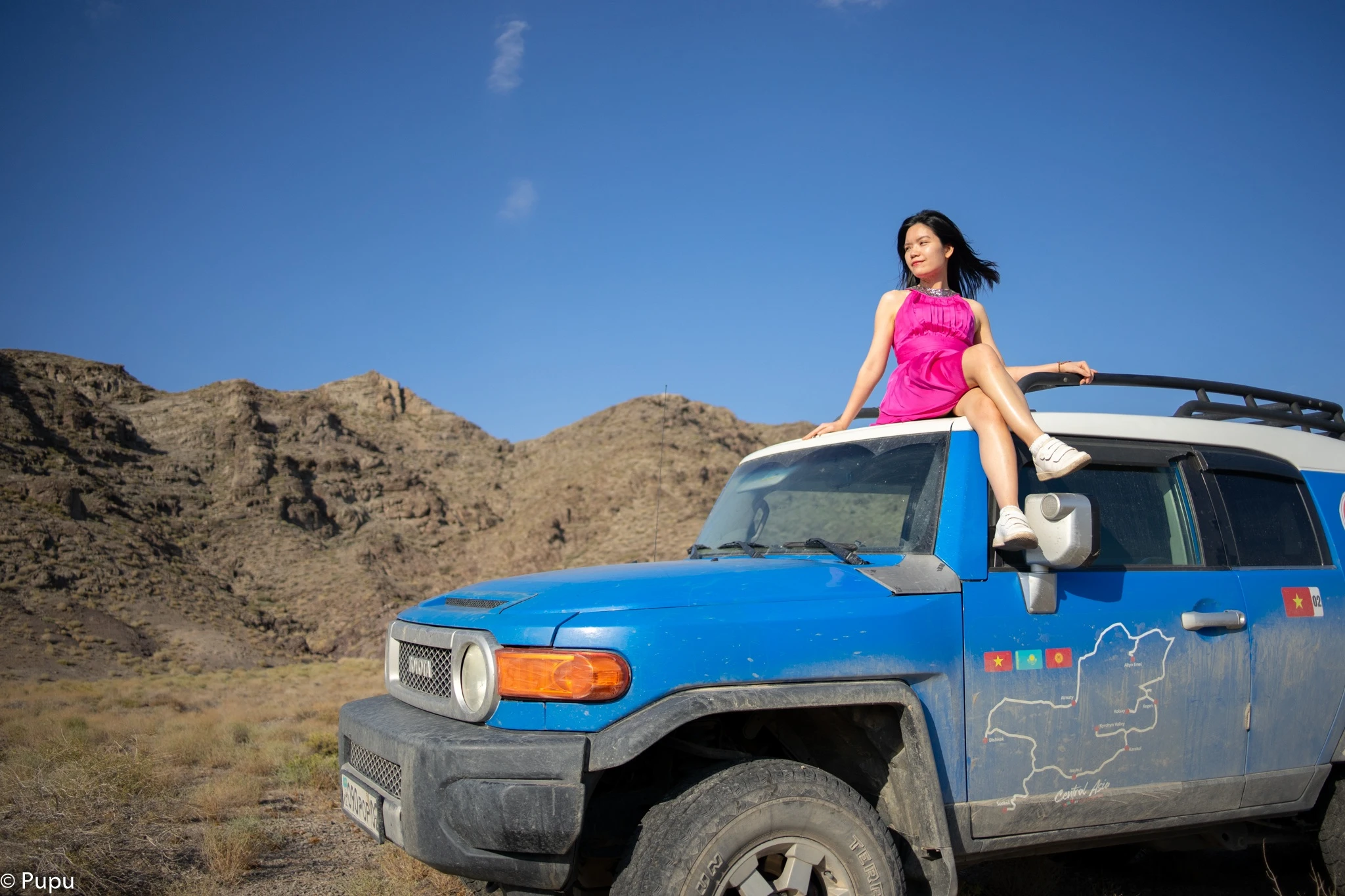 Họ bay từ Hà Nội vào Đà Nẵng, nối chuyến sang Almaty (Kazakhstan), rồi nhận xe SUV tự lái - một chiếc Toyota FJ Cruiser 4.0 V6, màu xanh dương, gầm cao - để bắt đầu hành trình dài 10 ngày, đi qua hàng loạt cung đường hoang dã bậc nhất Trung Á.