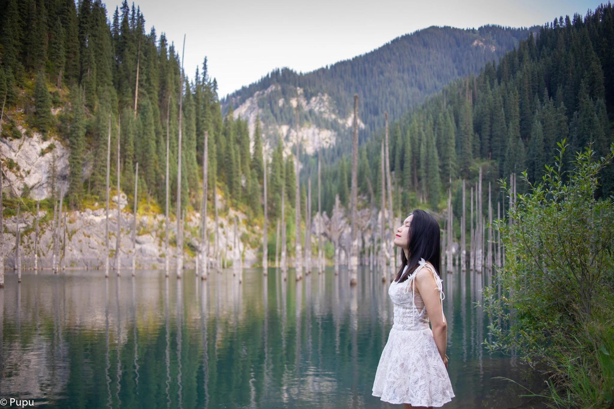 Chị kể: "Tôi đã đọc sách của Chyngyz Aitmatov (biểu tượng văn học của Kyrgyzstan, tác giả của nhiều tác phẩm kinh điển) từ nhỏ và luôn ước được một lần đặt chân đến vùng đất trong trang sách của ông". Niềm xúc động ấy càng lớn hơn khi chị có dịp chụp ảnh bên tượng nhà văn mà mình yêu mến.