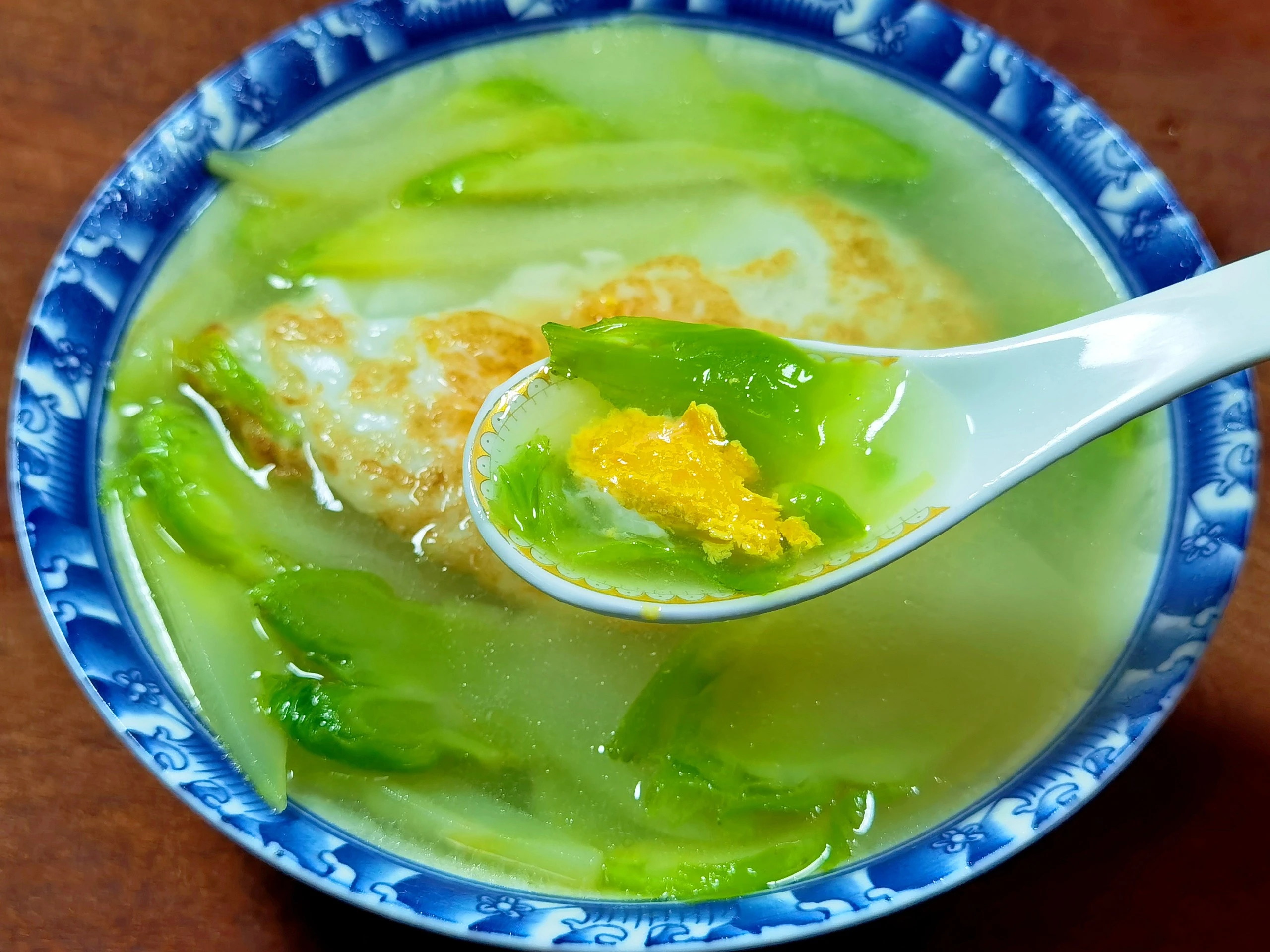 Món canh này ngon tuyệt cú mèo với hương thơm của trứng chiên và vị ngọt của rau cải mầm đá hòa quyện hoàn hảo vào nước dùng. Những lát cải mầm đá non mềm và hơi ngọt sau khi nấu, tạo nên món canh cực kỳ mịn mượt, thanh mát và thơm ngon. Vào một buổi tối mùa đông sau giờ làm, bạn có thể nấu một nồi canh này chỉ trong 12-15 phút. Ăn cơm với món canh này sẽ làm ấm người từ đầu đến chân và làm dịu cổ họng!