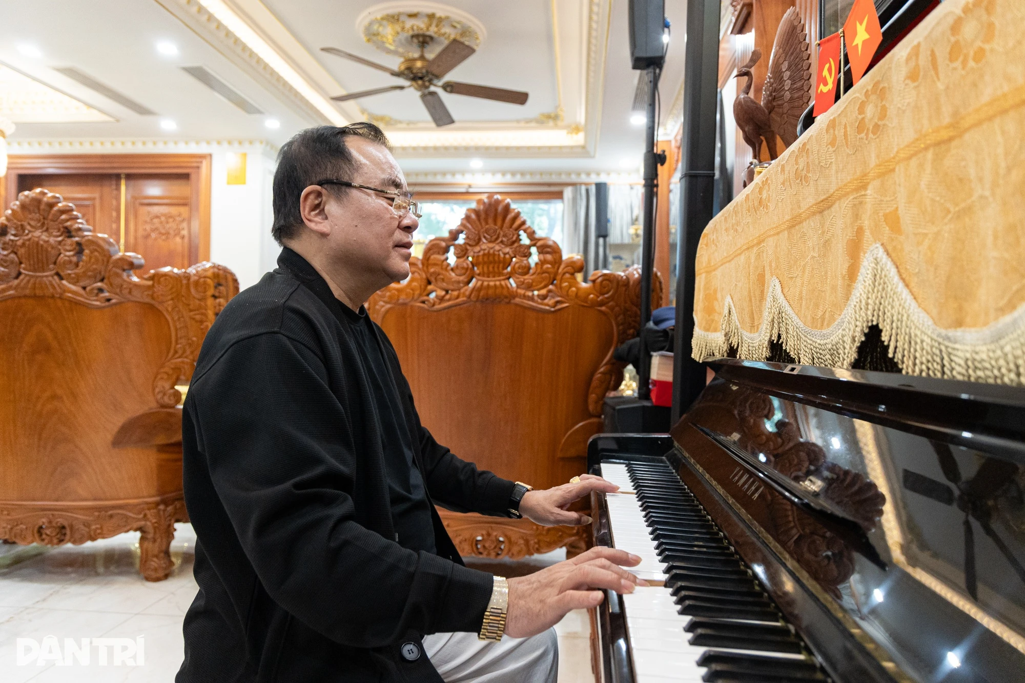 Đây là nơi NSND Quốc Trượng đặt cây đàn piano. Anh cho biết, thi thoảng nhà có khách, bạn bè hoặc đồng nghiệp là nghệ sĩ, họ sẽ ngẫu hứng đánh một bản nhạc mà mọi người đều thích.