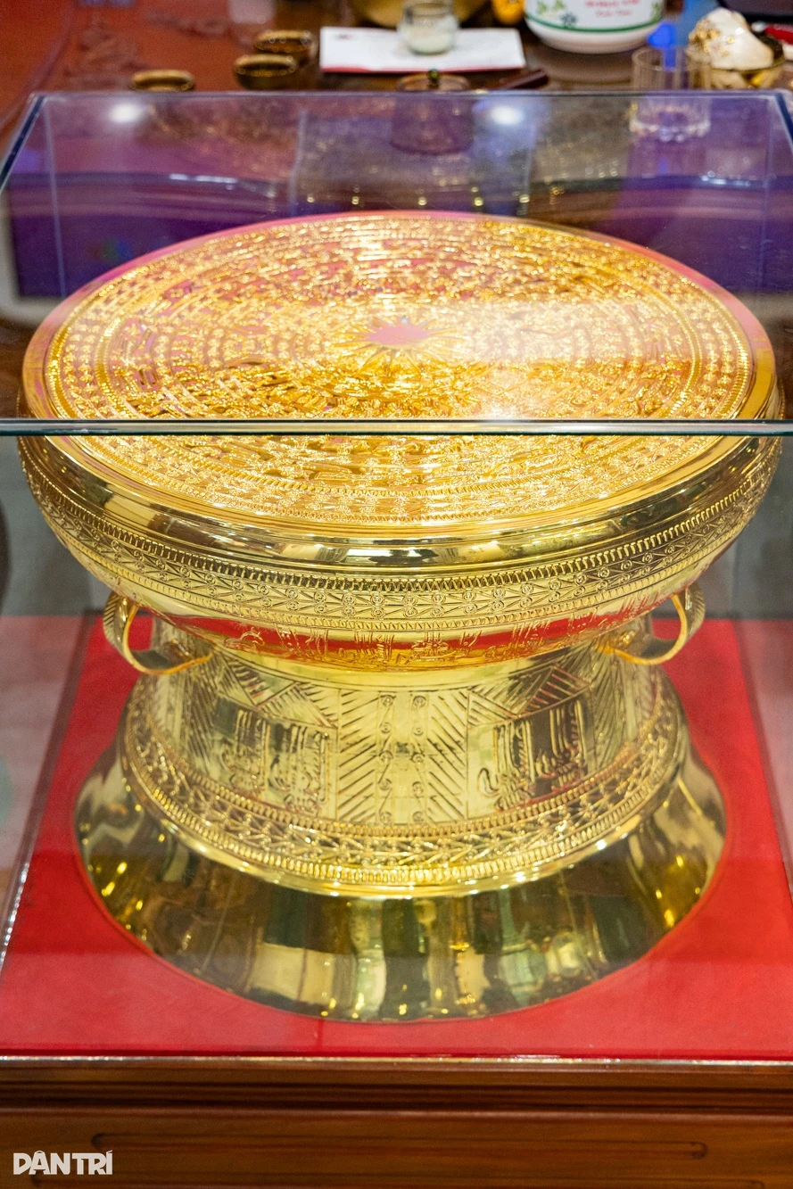 Hình ảnh trống đồng cũng được Quốc Trượng đặt ở phòng khách. Nam nghệ sĩ cho biết, đồ lưu niệm được anh đi công tác mua về hoặc do khán giả yêu mến gửi tặng.