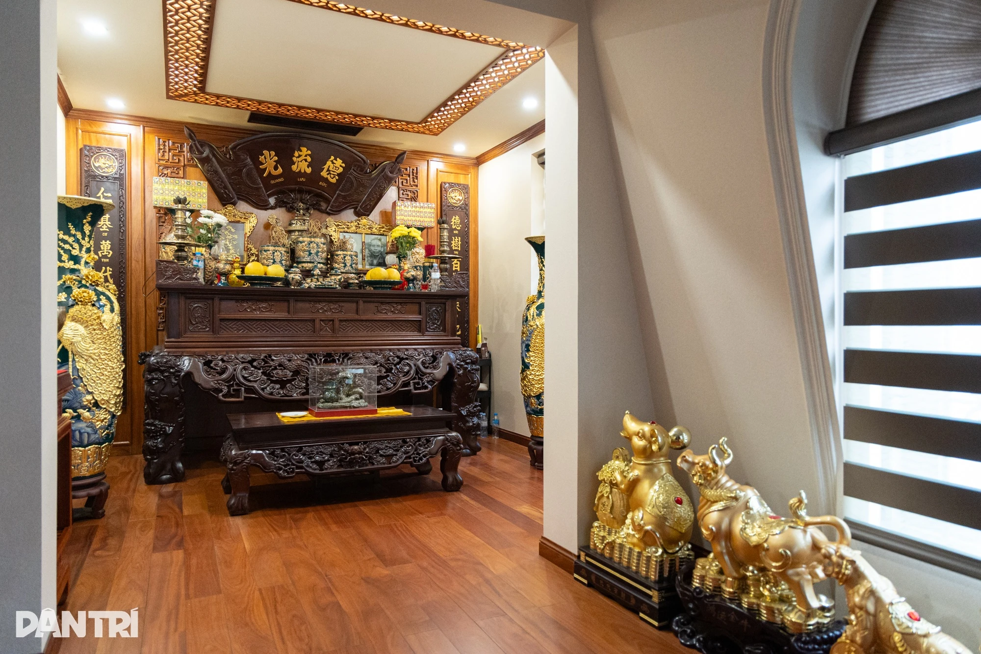 Trên tầng 4, NSND Quốc Trượng bố trí đặt bàn thờ gia tiên. Trong phòng thờ, anh đặt 12 con giáp tượng trưng cho 12 năm, theo cung Hoàng đạo của người Việt.
