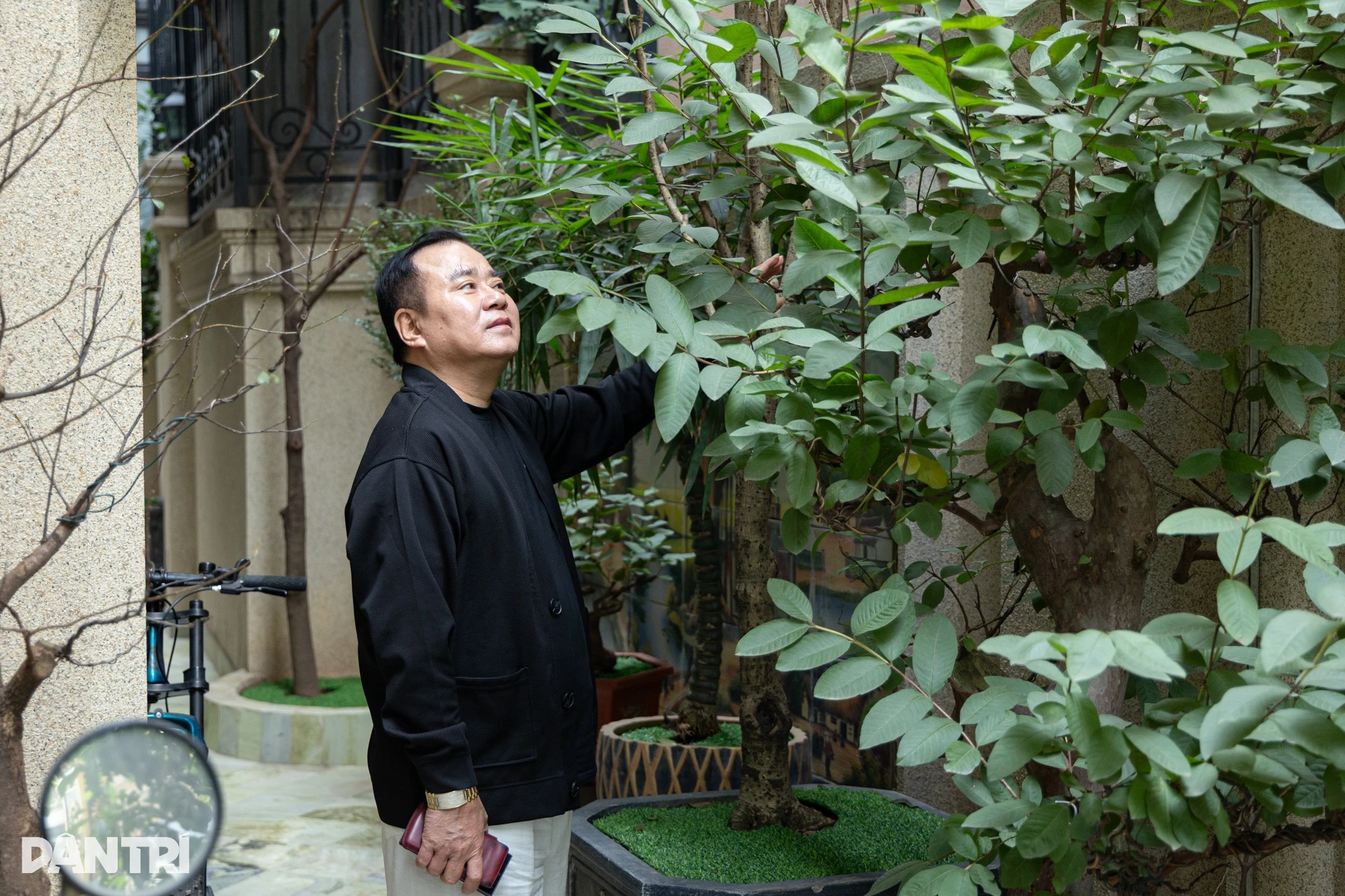 Xung quanh nhà NSND Quốc Trượng có nhiều cây xanh, hàng ngày anh thường đi bộ quanh biệt thự để thư giãn. Những lúc rảnh rỗi, anh thường chăm sóc cây cối, nhà cửa.