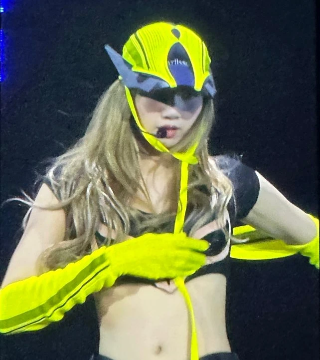 Trên sân khấu, Lisa xuất hiện với bộ outfit mang phong cách futuristic với tông đen – neon nổi bật. Điểm nhấn nằm ở phần bodysuit cắt xẻ táo bạo chạy dọc từ eo xuống chân, kết hợp chất liệu da bóng tạo hiệu ứng thị giác rất mạnh. Thực tế, các khoảng hở đã được “che chắn” bằng lớp vải nude ôm sát. Tuy nhiên, chính cách xử lý đường cắt xẻ bằng da ôm trọn cơ thể tạo các mảng khoét lớn lại khiến tổng thể outfit gây cảm giác hở hang và khiến nhiều người không khỏi “nóng mắt”.