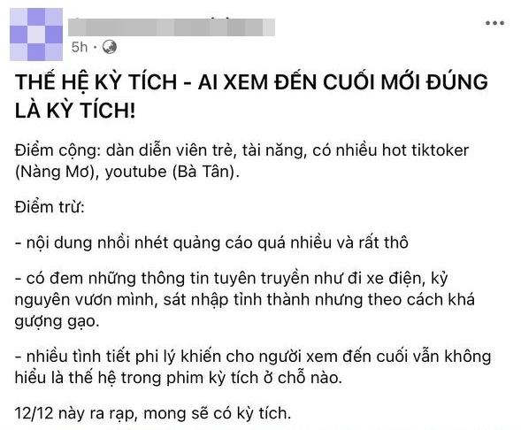 Dù đến tận ngày 12/12 mới chính thức công chiếu nhưng phim Thế Hệ Kỳ Tích của đạo diễn Hoàng Nam đang trở thành đề tài gây xôn xao trên mạng xã hội, đặc biệt sau buổi chiếu sớm. Dự án thuộc đề tài thiếu niên phấn đấu nhận về nhiều đánh giá không mấy tích cực, thậm chí gây phẫn nộ diện rộng.