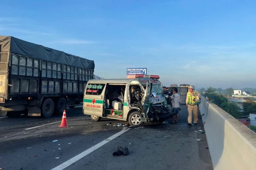 Thông tin ban đầu, dòng xe lưu thông trên cao tốc TPHCM - Trung Lương theo hướng từ Tây Ninh đi Đồng Tháp. Khi đến Km22 750 đã xảy ra va chạm giao thông giữa ô tô cứu thương BKS 71A 23752 và xe tải BKS 51D 96398.