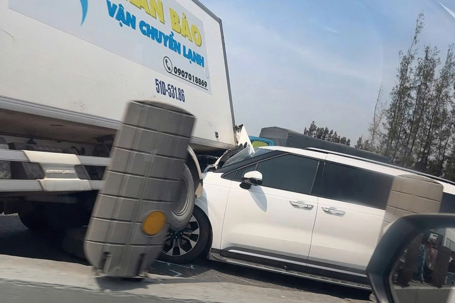 Hiện trường 6 ô tô tông liên hoàn trên cao tốc TPHCM – Trung Lương. Ảnh: AH