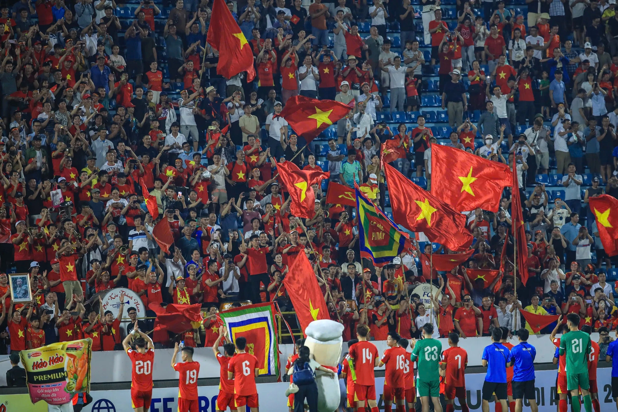 Sau trận đấu các cầu thủ lập tức tiến về khu vực khán đài cảm ơn sự cổ vũ cuồng nhiệt của hàng ngàn khán giả trên sân Thiên Trường