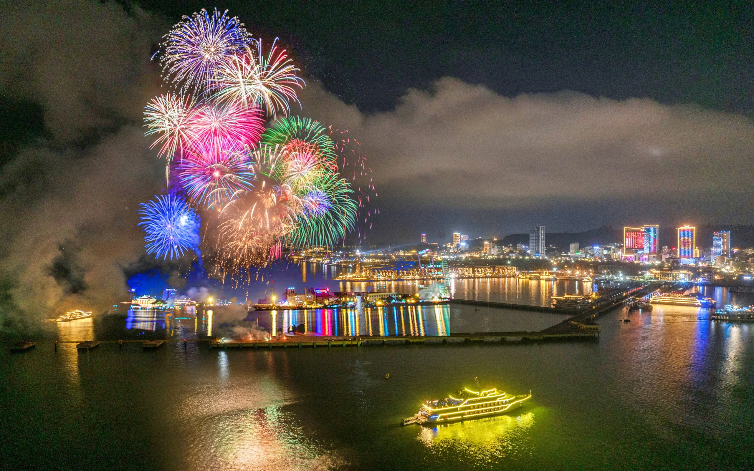 Tối 4/7 hơn 1.000 quả pháo hoa cùng 50 hiệu ứng đặc biệt thắp sáng bầu trời vịnh Hạ Long, mang lại một đêm hè bùng nổ cảm xúc cho khách du lịch tại Vịnh Pháo hoa - không gian lễ hội mới tại Sun Elite City, tâm điểm mùa hè 2025 tại Quảng Ninh. Ảnh: Báo Thanh Niên