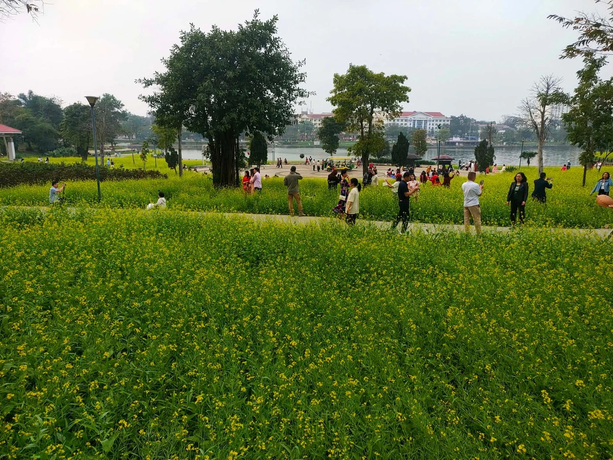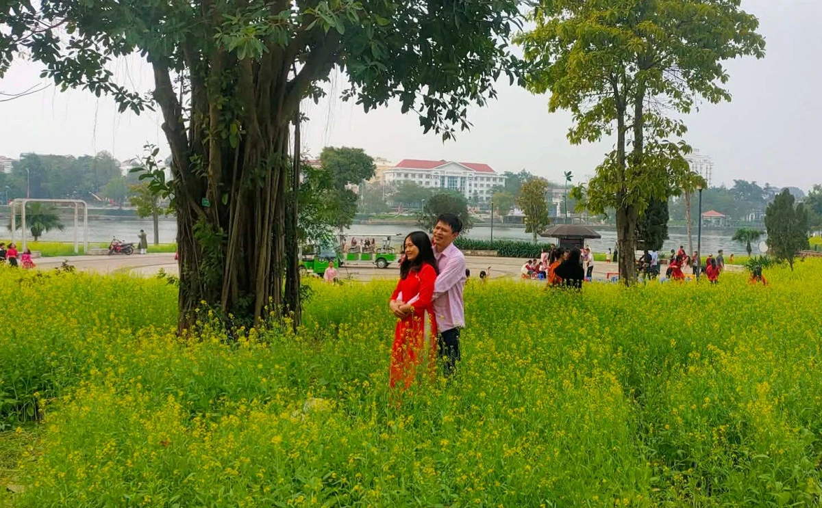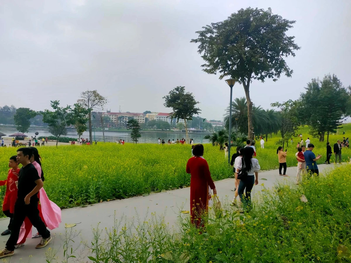 Những ngày đầu xuân, Công viên Văn Lang rộn ràng người tham quan, chụp ảnh bên cánh đồng hoa cải nở vàng, tạo nên không khí du xuân tươi vui.