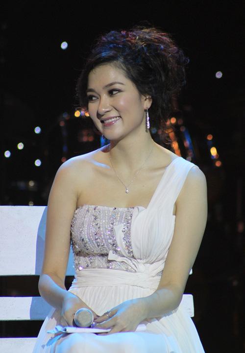 Nguyễn Thị Huyền duyên dáng trong một chương trình truyền hình trực tiếp.