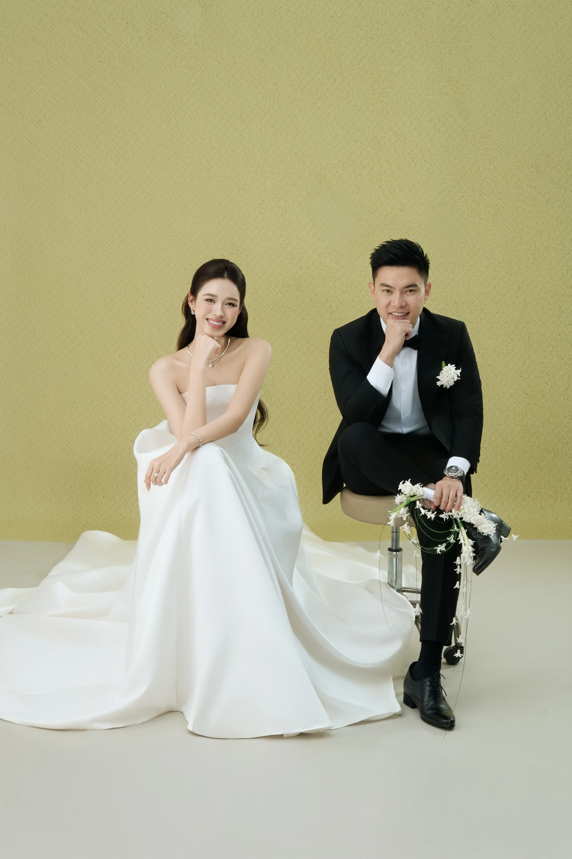 Hoa hậu Đỗ Hà chọn váy cưới tinh tế, vừa kín đáo vừa thanh lịch khoe trọn lợi thế hình thể là đôi chân dài 1,1m và vòng eo con kiến. Cặp đôi sử dụng hoa tươi để chụp ảnh, nhìn qua đã biết sự đầu tư và chỉn chu cả hai dành cho dịp đặc biệt. Đáng chú ý nhất, Viết Vương và Đỗ Hà còn thực hiện 1 bộ ảnh diện áo dài thể hiện vẻ đẹp truyền thống. Những khoảnh khắc của tân lang tân nương được khen ngợi vừa đẹp vừa sang xịn lại vô cùng ý nghĩa.