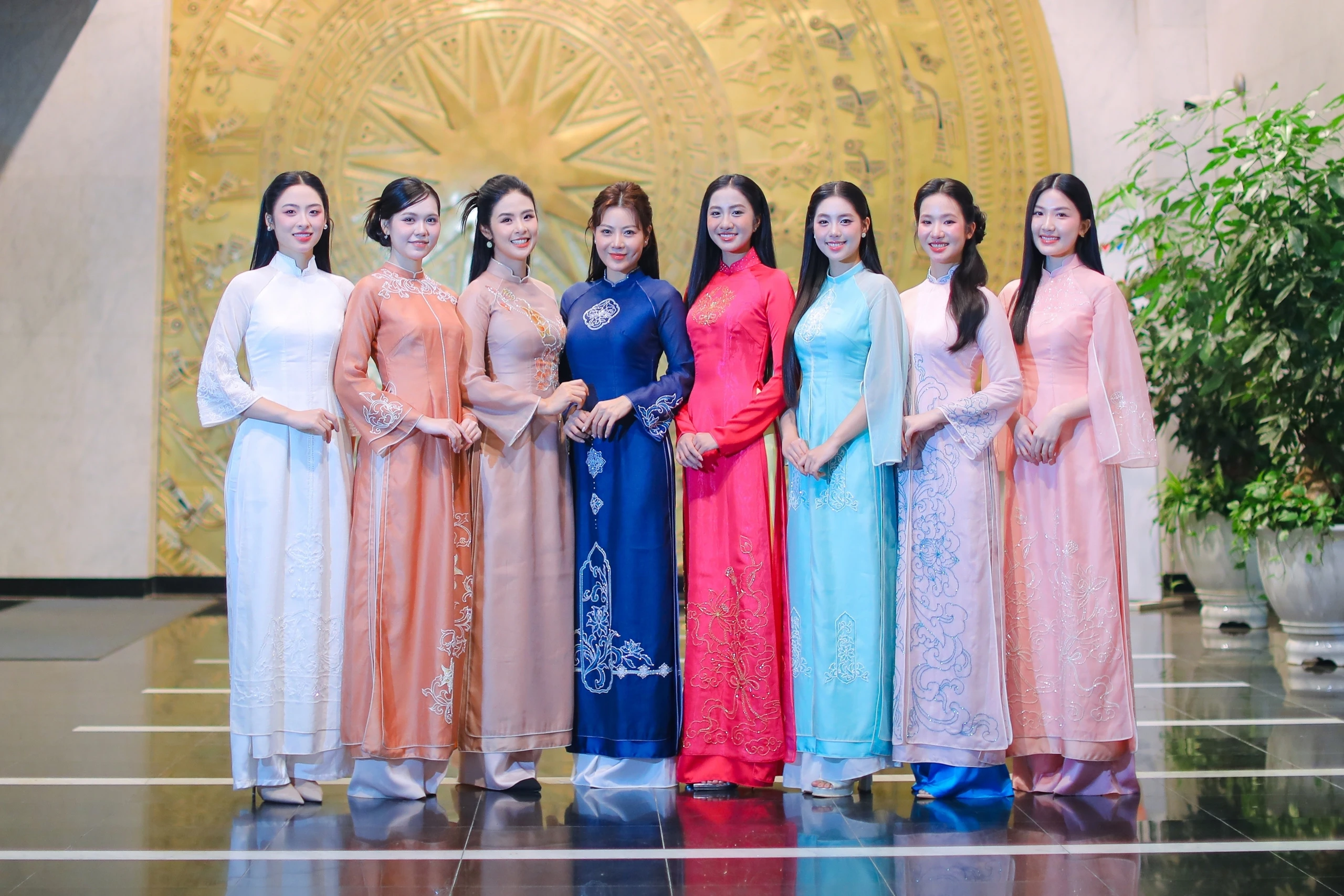 Thanh Hương, Lương Thanh, Trúc Linh… khoe sắc trong thiết kế áo dài của Hoa hậu Ngọc Hân . Ảnh: Hoàng Vân