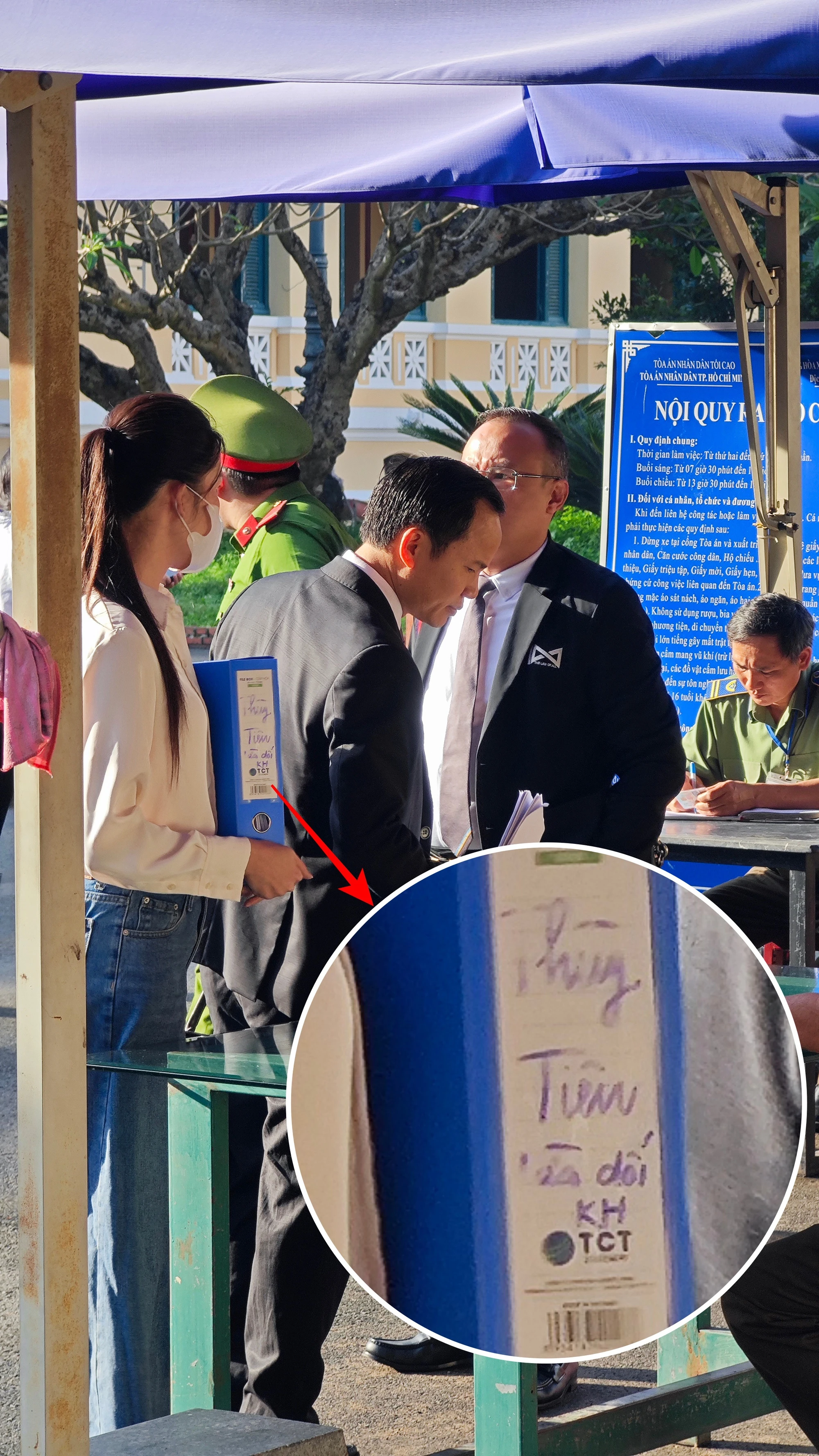 Theo ghi nhận của chúng tôi, Hoa khôi Thuý Vi được vào bên trong phiên toà xét xử. Khi đến toà, Thuý Vi ôm theo một chiếc hộp màu xanh khiến nhiều người tò mò. Khi quan sát kỹ, chiếc hộp bí ẩn này có dòng chữ “Thuỳ Tiên lừa dối KH (khách hàng – PV)”. Vì thế, có thể đây đơn thuần là chiếc hộp chứa những hồ sơ, giấy tờ liên quan đến vụ án của Hoa hậu Thuỳ Tiên.