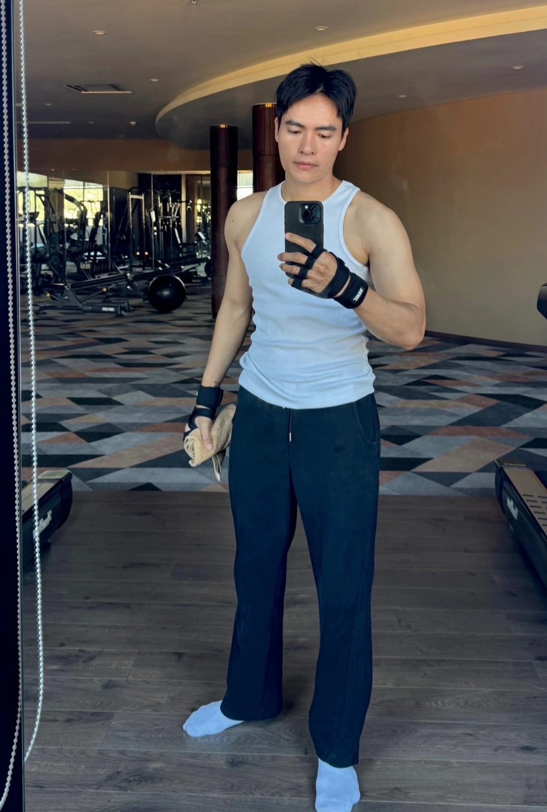 Võ Tấn Phát khoe vóc dáng sau buổi tập gym, cho biết anh thấy mình còn hơi gầy.