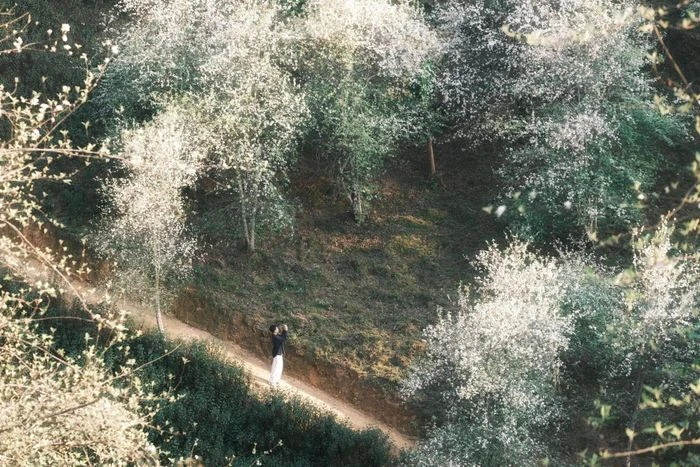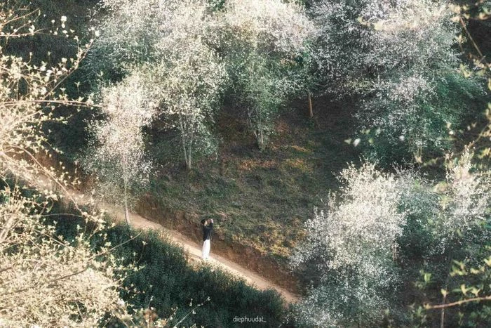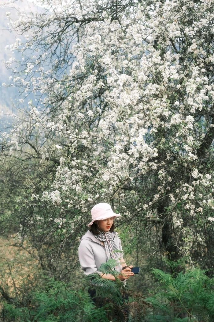 Nhiếp ảnh gia Diệp Hữu Đạt, hiện đang làm việc tại Tà Xùa, vừa ghé thăm Làng Chếu vào ngày 13-3 và ghi lại những khoảnh khắc đẹp của mùa hoa sơn tra. Anh chia sẻ rằng hoa sơn tra tại các bản thuộc xã Làng Chếu đang bắt đầu nở rộ, tạo nên những đồi hoa trắng xóa ven các cung đường, thu hút du khách ghé thăm. Ảnh: Diệp Hữu Đạt