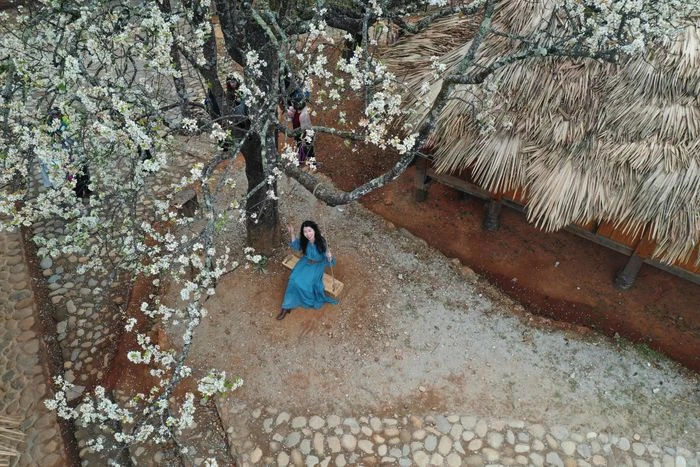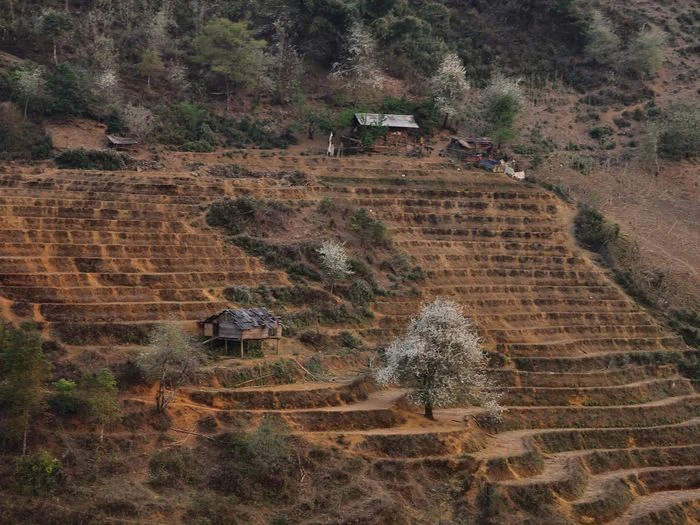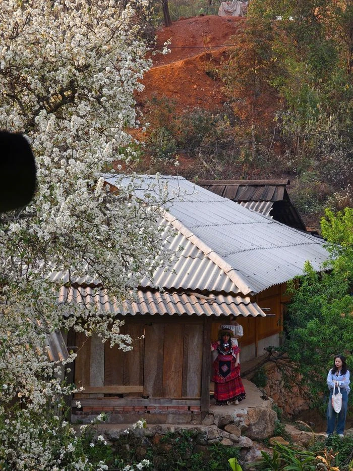 Vào tháng Ba hằng năm, Làng Chếu thu hút nhiều du khách và nhiếp ảnh gia đến chụp ảnh khi mùa hoa sơn tra - hay còn gọi là táo mèo - vào độ nở rộ nhất. Những cánh hoa trắng ngà bung nở khắp các sườn đồi, tạo nên khung cảnh nên thơ. Ảnh: Diệp Hữu Đạt