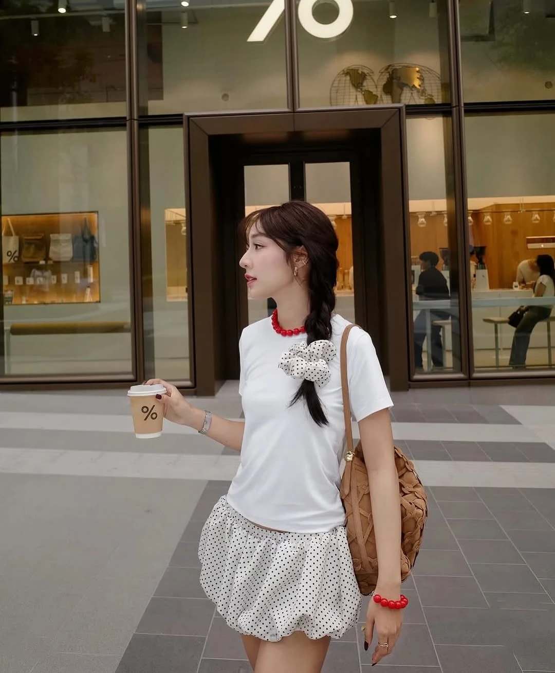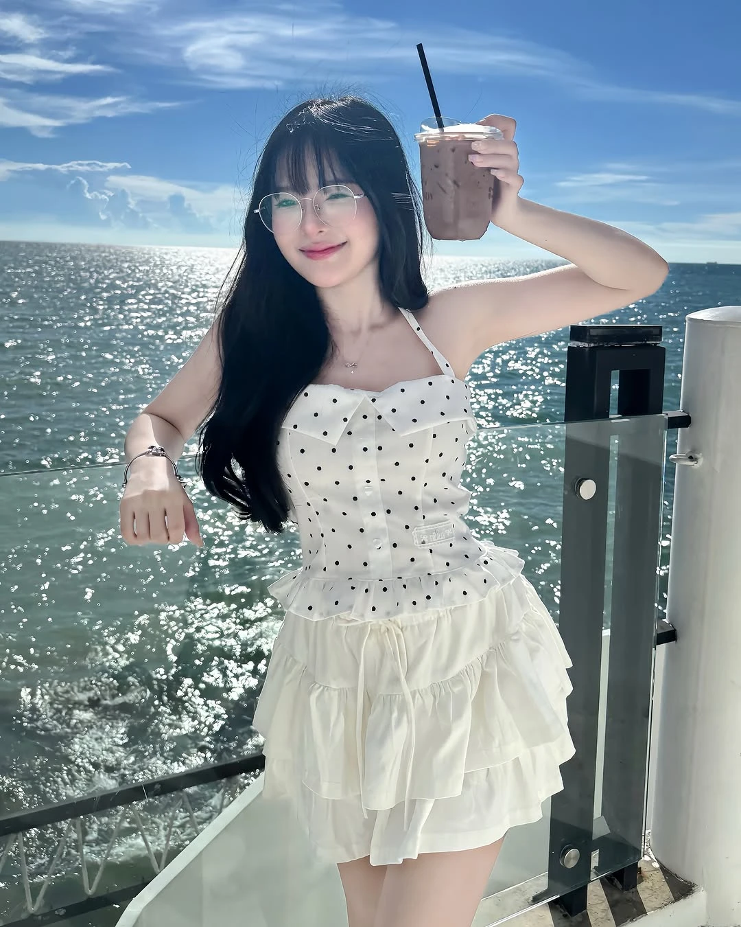 Không gì có thể vượt qua sức hút vượt thời gian của họa tiết chấm bi tạo nên phong cách lãng mạn .ẢNH: @RIKA.SHOPP