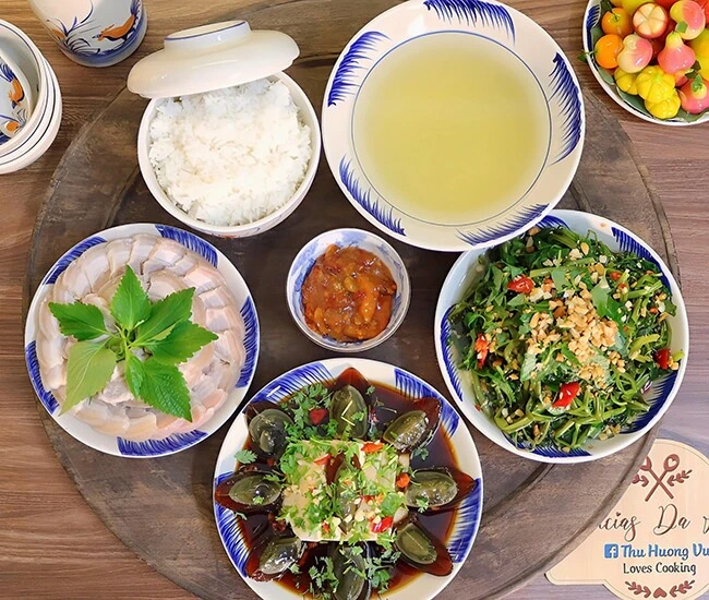 Tham khảo mâm cơm nhà chị Vũ Thu Hương để có thêm ý tưởng cho bữa cơm nhà mình. Mâm cơm này gồm các món: