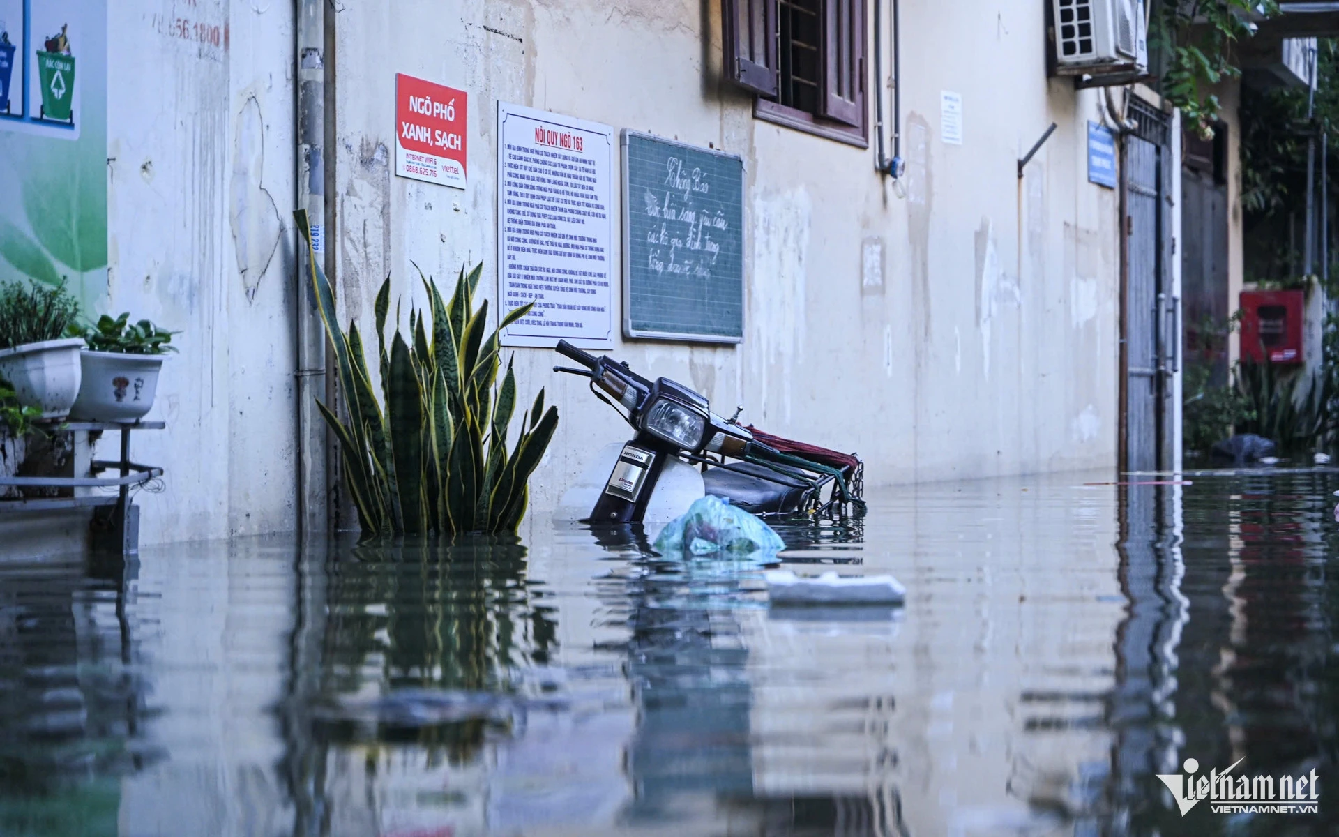 Con ngõ đã mất điện từ trưa 30/9. Rất nhiều người thuê trọ, người dân trong ngõ đã ôm quần áo, đồ dùng cá nhân đi di tản. Họ gọi đây là cuộc "tháo chạy" bởi càng lúc nước càng bẩn và bốc mùi, sộc lên các tầng cao hơn trong nhà.
