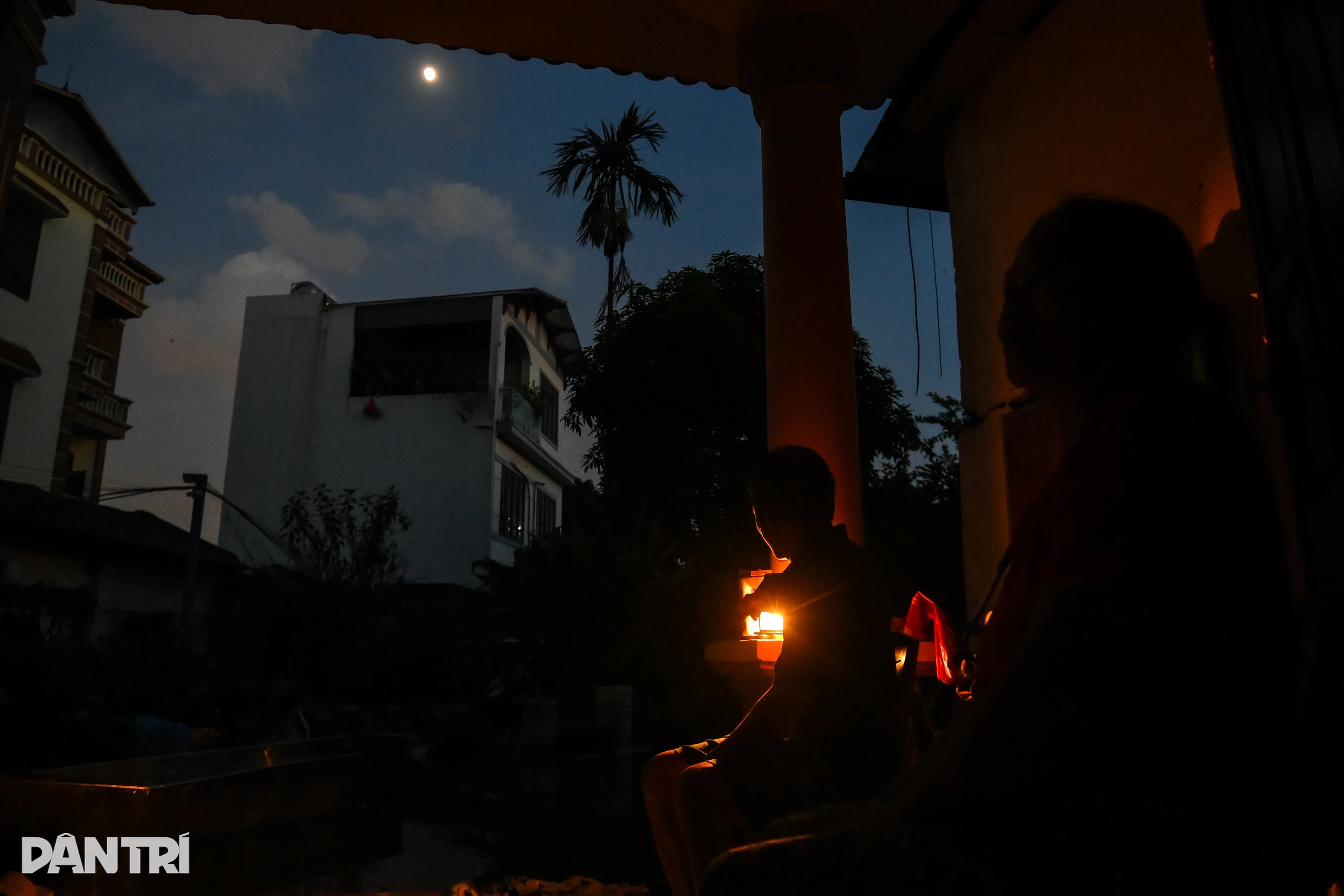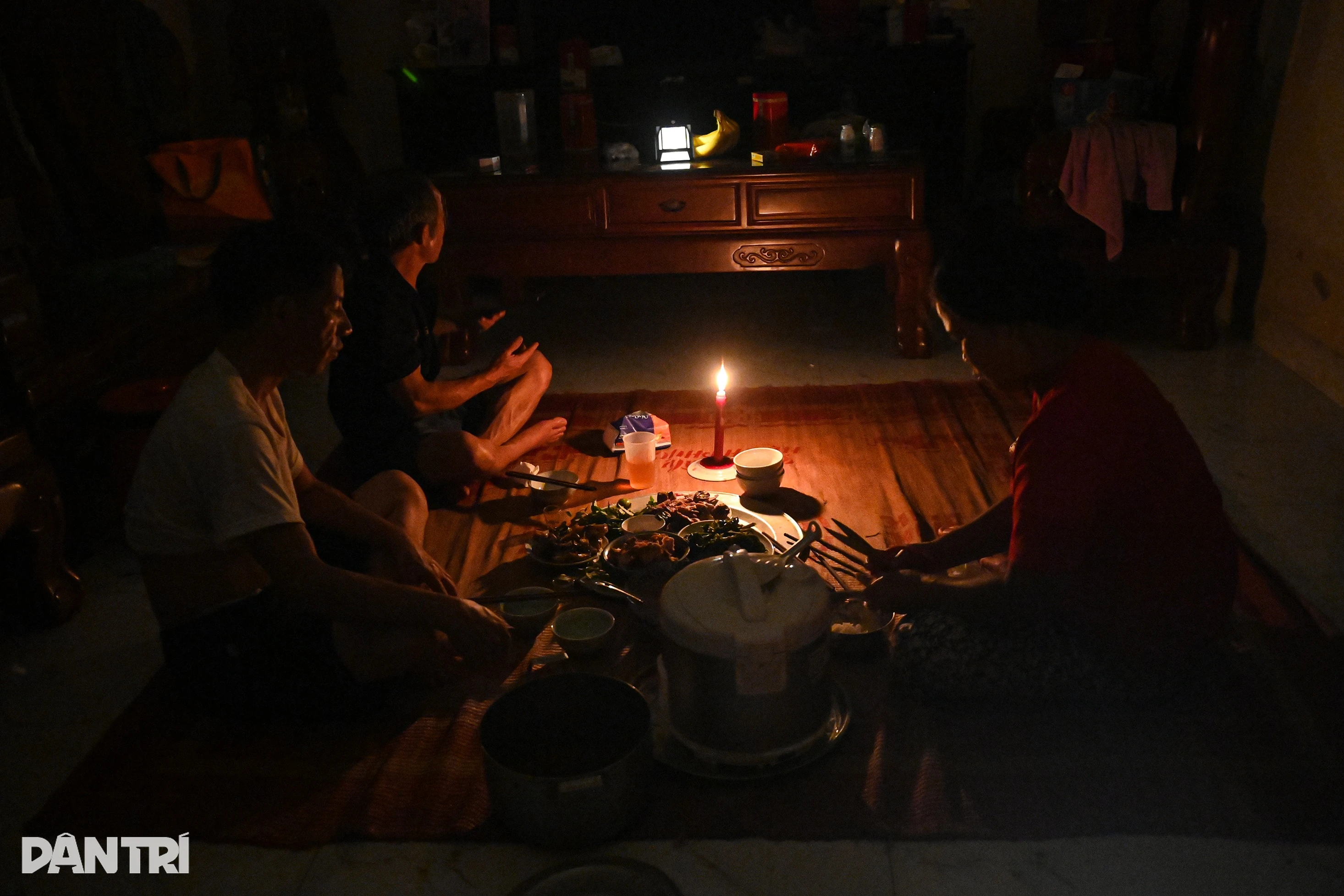 Trong ánh đèn yếu ớt, ông Thắng đốt thêm cây nến đặt dưới nền nhà nữa để đủ ánh sáng cho bữa cơm tối. Nhà có thêm em trai và em gái sang ăn cơm cùng vì họ cũng không có điện để nấu cơm. Bốn ngày nay con trai ông Thắng không về nhà vì ngập sâu, phải ở lại tạm nhà bạn để tiện đi làm.