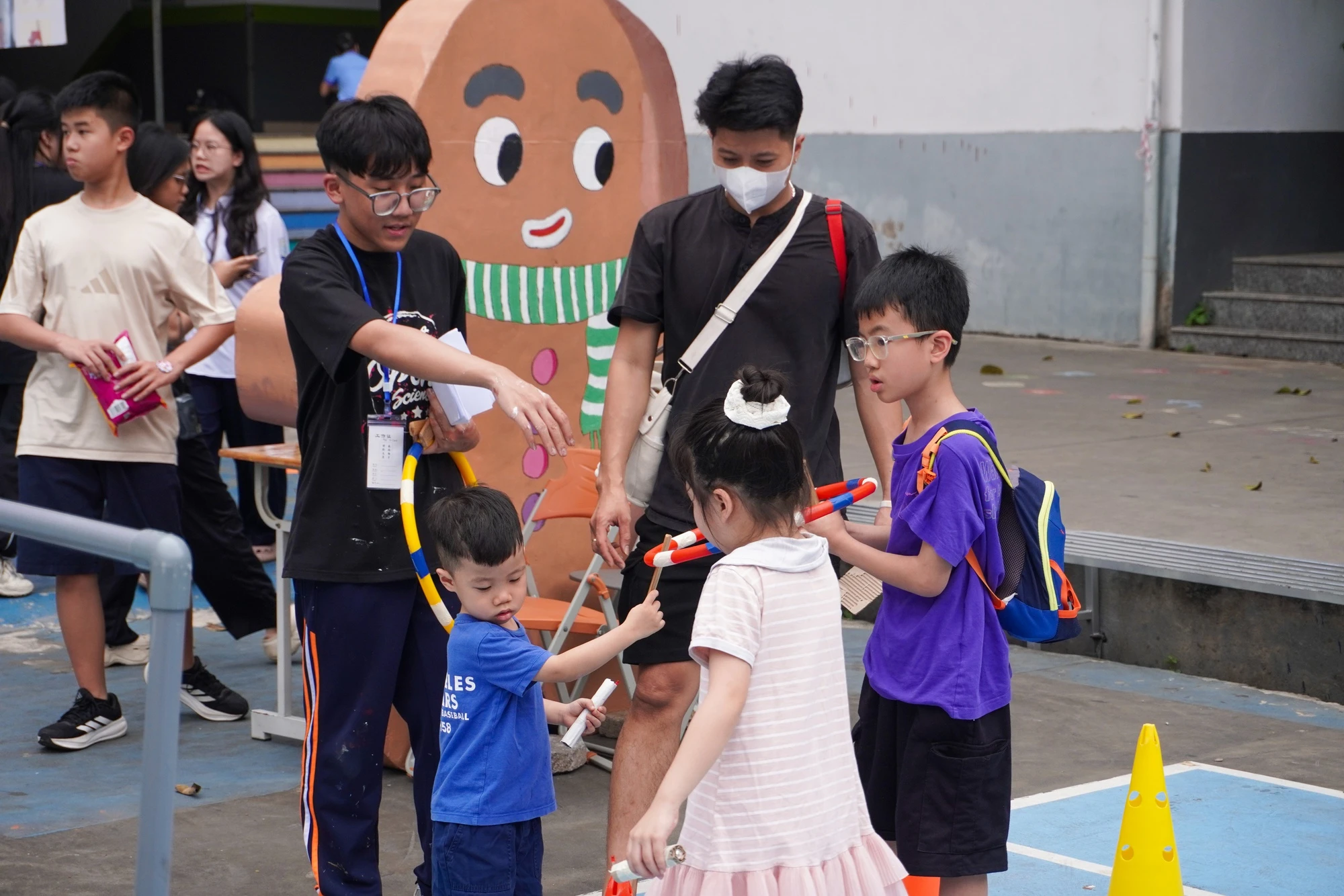 Khách tham gia đủ mọi lứa tuổi hào hứng trải nghiệm những hoạt động sáng tạo tại hội chợ