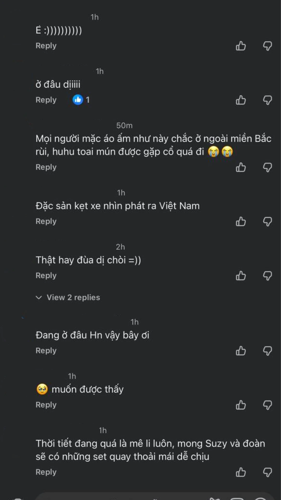 Chỉ sau ít phút, đoạn video dài khoảng 10 giây đã khiến MXH phát sốt. Người người nhà nhà truy tìm địa điểm check-in để tới đu idol. Một số ý kiến còn trêu rằng, giờ người dân phải cẩn thận chứ vừa ra đầu ngõ đã gặp luôn siêu sao nổi tiếng. Đa số bình luận khen ngợi nhan sắc không makeup của Suzy quá tuyệt vời, lặn ngụp trong showbiz hơn 15 năm vẫn trẻ trung, rạng rỡ kể cả khi vận động mạnh.