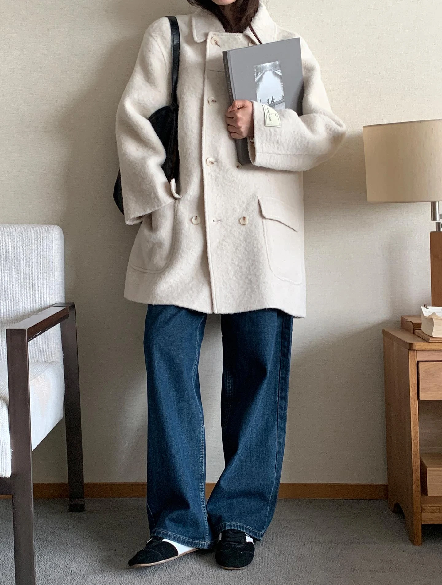 Áo khoác dạ cổ tròn thường được thiết kế dáng suông hoặc hơi ôm, có thể đi kèm hàng cúc nhỏ phía trước. Khi mặc, bạn có thể kết hợp với áo blouse cổ nơ buộc hoặc áo sơ mi bên trong để tạo lớp layer đẹp mắt. Những gam màu sáng như trắng kem, hồng nhạt, xanh pastel đặc biệt phù hợp với kiểu cổ tròn, mang lại cảm giác nhẹ nhàng và tươi mới cho những ngày Tết.