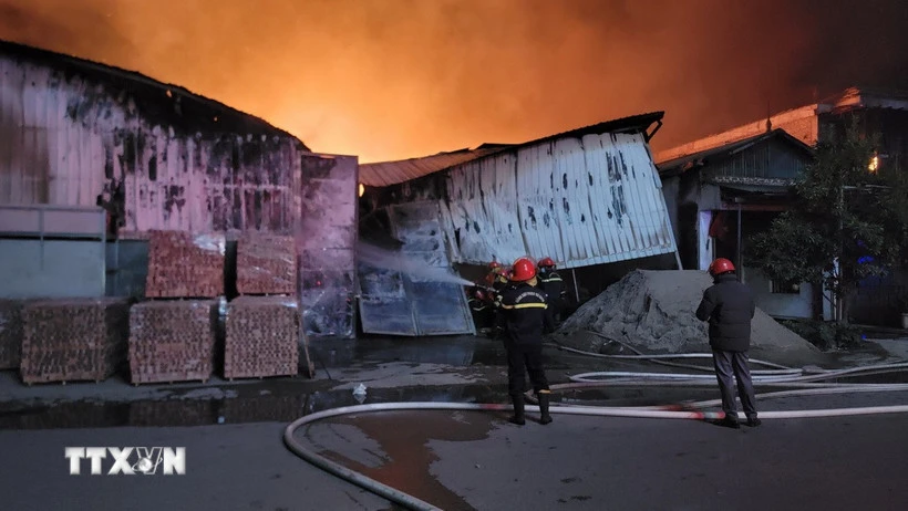 Trước đó, theo ghi nhận của phóng viên TTXVN tại hiện trường, khu vực xảy ra cháy có nhiều nhà xưởng chế biến gỗ và tái chế phế liệu nhựa. Xung quanh còn có những đống gỗ và nylon. Một số khu vực nhà xưởng đã bị sập đổ.
