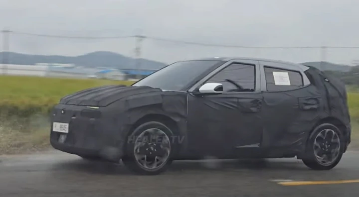 Mẫu xe được cho là IONIQ 3 đang di chuyển với lớp vải che. (Ảnh: Healer TV)