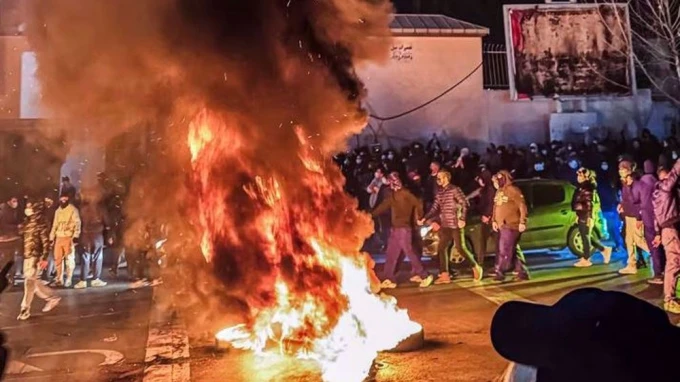 Người biểu tình đốt lốp xe trên đường phố thủ đô Tehran của Iran ngày 9/1. Ảnh: Tasnim