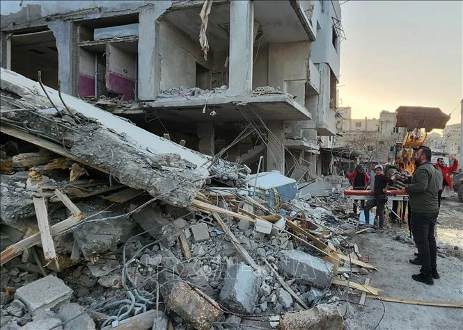 Tòa nhà tại Latakia , Syria, bị phá hủy sau một vụ nổ, ngày 15/3/2025. Ảnh tư liệu: THX/TTXVN
