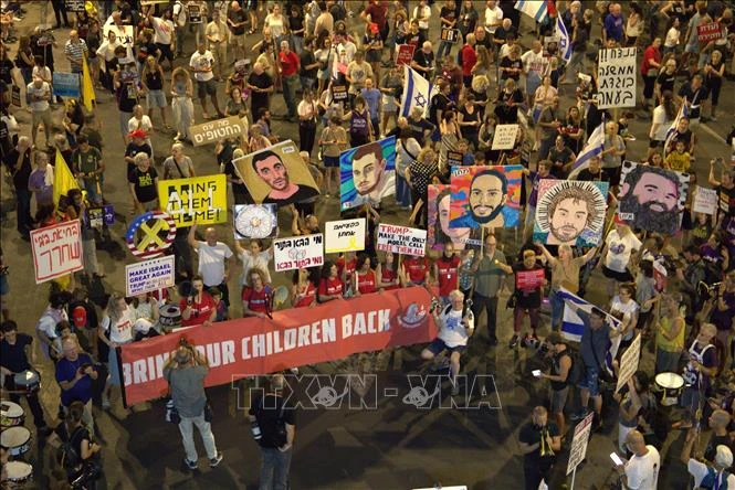 Tối 16/8, hàng nghìn người dân Israel đã xuống đường biểu tình để thể hiện sự ủng hộ đối với 50 con tin, trong đó khoảng 20 người được phía Israel tin là còn sống, đang bị Hamas giam giữ gần 700 ngày qua. Cuộc biểu tình được tiến hành tại Quảng trường Con tin, trước Bảo tàng Tel Aviv, trước khi cuộc tổng đình công toàn quốc diễn ra vào ngày 17/8.