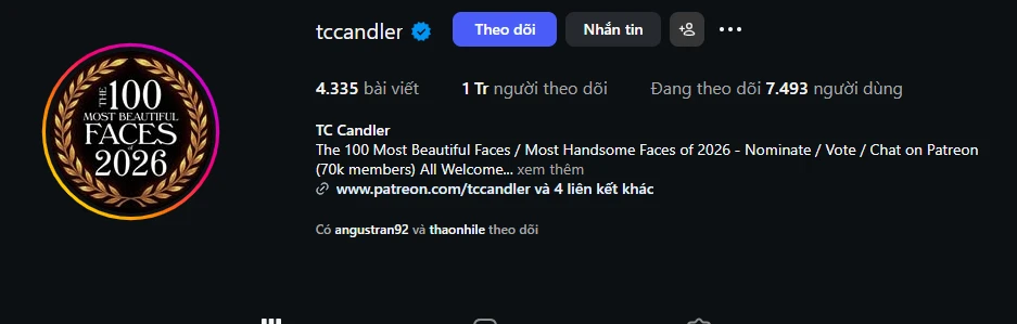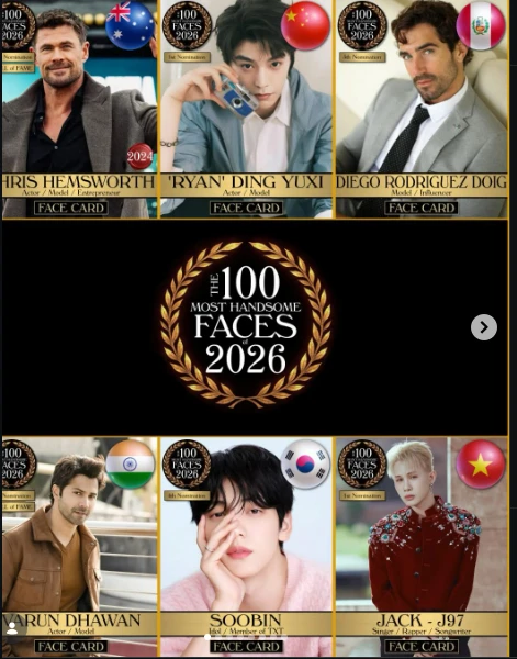 Mới đây, TC Candler – trang Instagram sở hữu hơn 1 triệu người theo dõi tiếp tục thu hút sự chú ý khi công bố danh sách đề cử 100 gương mặt đẹp trai nhất thế giới 2026. Đáng chú ý, danh sách năm nay tiếp tục có sự góp mặt của đại diện Việt Nam là ca sĩ Jack. Trước đó, các đại diện Việt từng được đề cử cho mùa giải 2026 còn có Gemini Hùng Huỳnh, Huyền 204, Ninh Dương Lan Ngọc.