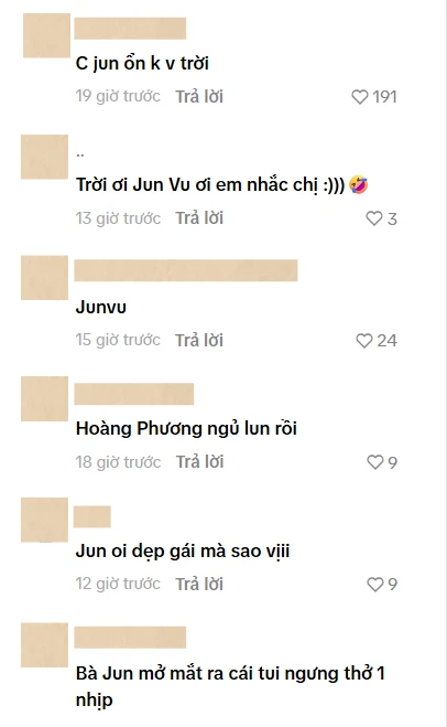 Dù chỉ là một đoạn clip đu trend mang tính giải trí, hành động của Jun Vũ vẫn nhanh chóng nhận nhiều quan tâm, nhất là khi thời gian qua nữ diễn viên vướng phải nghi vấn tình ái. Bên dưới đoạn clip, nhiều netizen liên tục hỏi han “Jun Vũ có ổn không?”.