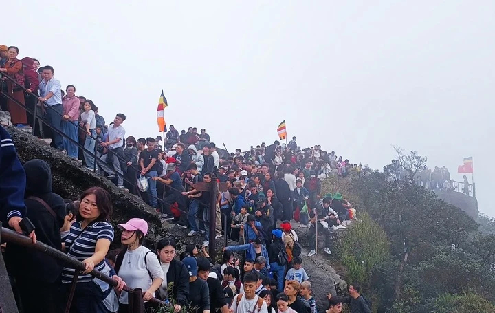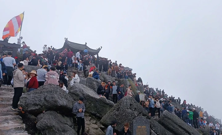 Ngày 19/2 (mùng 3 Tết), Chùa Đồng trên đỉnh Yên Tử (Quảng Ninh) đón khoảng 20.000 du khách du xuân, lễ Phật, khiến đường lên chùa rơi vào tình trạng quá tải.